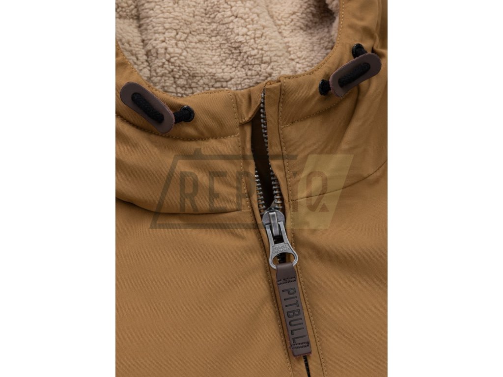 Zimní bunda ELKWOOD 3 z nejnovější kolekce PIT BULL WEST COAST. Klasický univerzální střih, vyrobeno z vysoce kvalitní tkaniny odolné proti dešti a větru. V kapuci světlý umělý beránek. Kapuce nastavitelná pomocí stahovacích šňůr s koženými zarážkami. Na bundě naleznete dvě boční kapsy na zip, uvnitř bundy menší kapsa na zip. Všechny zipy jsou kovové s koženými přívěsky na zipech pro snadné rozepnutí. Rukávy ukončeny do silné široké manžety, stejně tak jako spodní část bundy. Složení vnějšího materiálu: 100% nylon, vnitřní část umělý beránek, podšívka 100% polyester