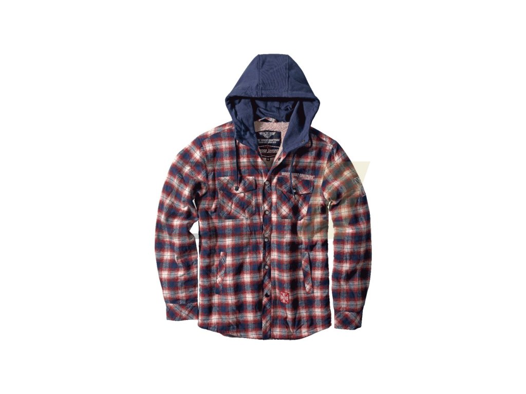 West Coast Choppers - MIKINA/BUNDA WCC SHERPA LINED FLANNEL JACKET - NAVY/RED