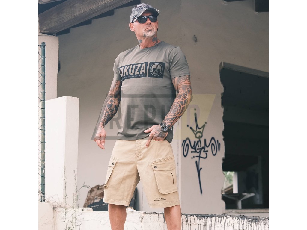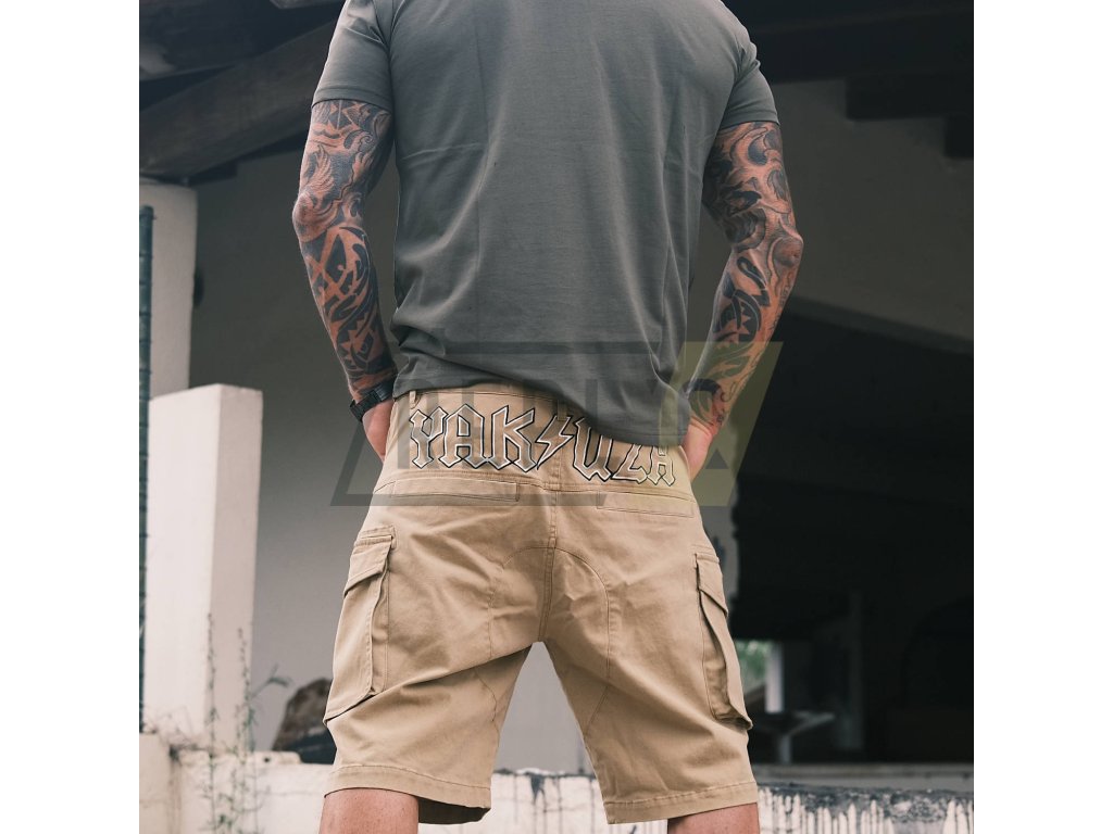 Pánské cargo šortky YAKUZA. Zůstaňte v pohodlí v těchto uvolněných klasických cargo šortkách: Ne příliš úzké, ne příliš volné, tak akorát. Tyto šortky dodají vašemu stylu drsnou atmosféru, mají design se sedmi kapsami, zapínání na knoflíky a poutka na opasek. Šortky jsou zakončeny epickými aplikacemi loga, vyraženým logem Yakuza na přední kapse a štítkem s logem nad zadní kapsou. Věnujte prosím pozornost našim specifikacím velikosti a pokynům pro praní níže.