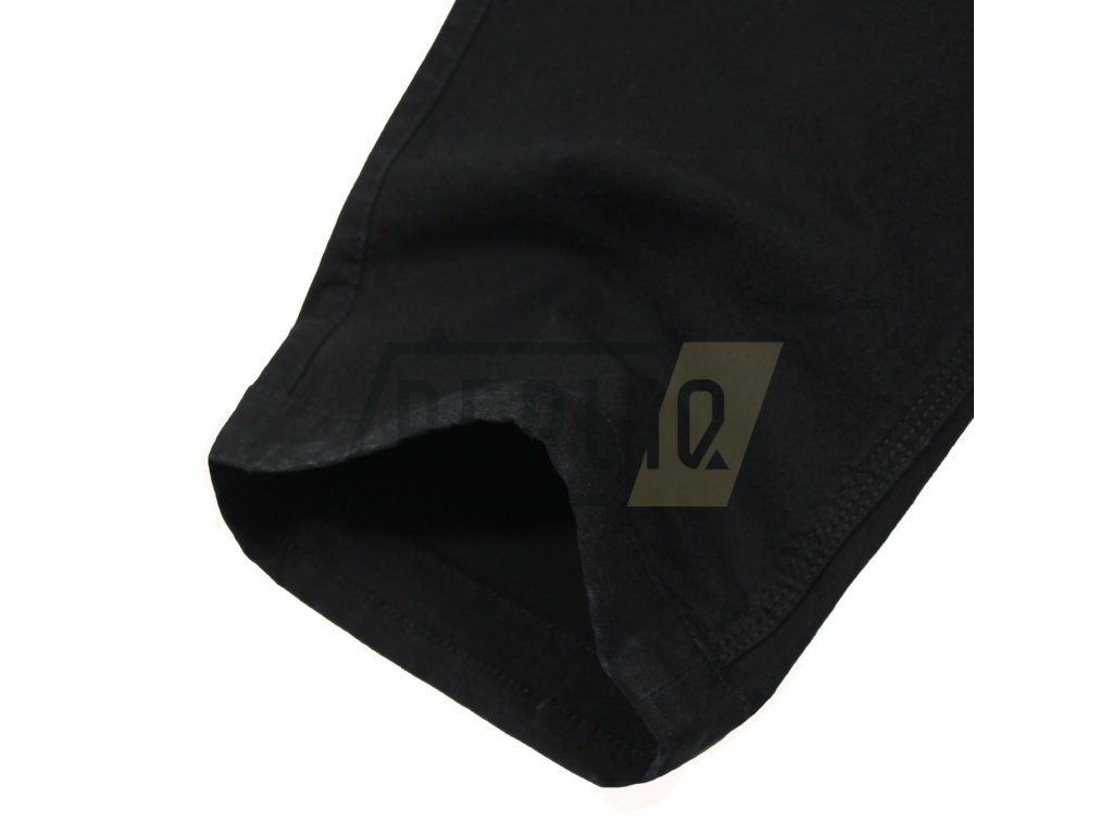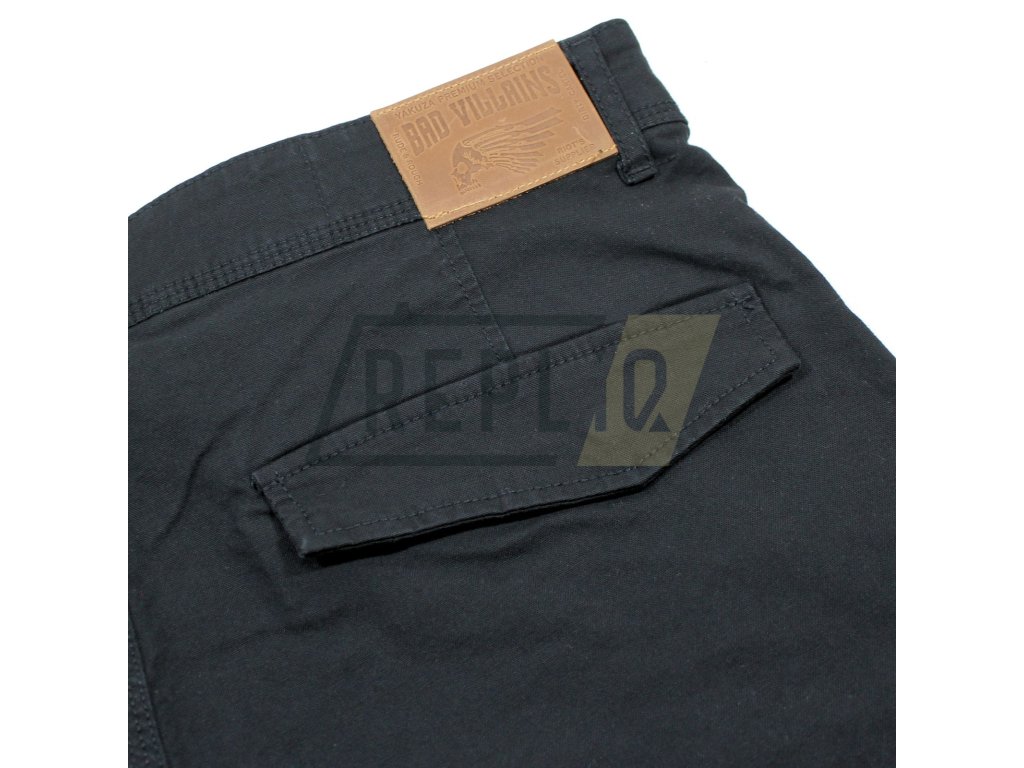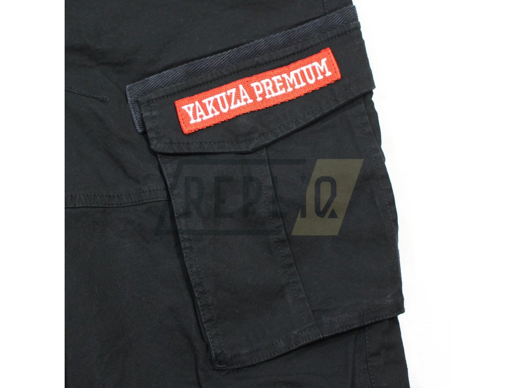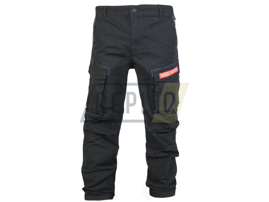 Dlouhé cargo kalhoty 3750 v černé barvě od Yakuza Premium Selection. Tyto úzké džíny mají dvě boční cargo kapsy, z nichž levá má velkou poutavou nášivku s nápisem. Má také dvě průhmatové kapsy. Samozřejmostí jsou i dvě zadní kapsy na zádech, každá je uzavíratelná na druky. Zvláštností těchto cargo kalhot je ležérní zúžený střih. Má velmi pohodlný střih a je vyrobena ze 100% bavlny. Šířka pasu na příkladu L je cca 45 cm, měřeno vleže, délka cca 105 cm. Provokativní motivy a skvělá kvalita látek nyní ve vašem prémiovém obchodě Yakuza.