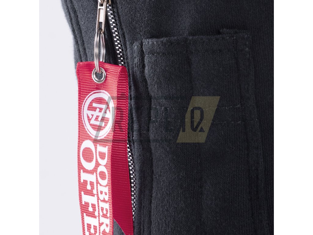 Bavlněné teplákové kalhoty se dvěma kapsami, které mají elastický stahovací lem a šňůrky v pase. Náš model je doplněn dvěma kapsami na zadní straně a také vepředu je kapsa, která dokonale ladí s kapsou na rukávu mikiny díky červené pásce. Na pravé nohavici se nachází velký nápis, který představuje naše logo a malá nášivka se stejným nápisem.