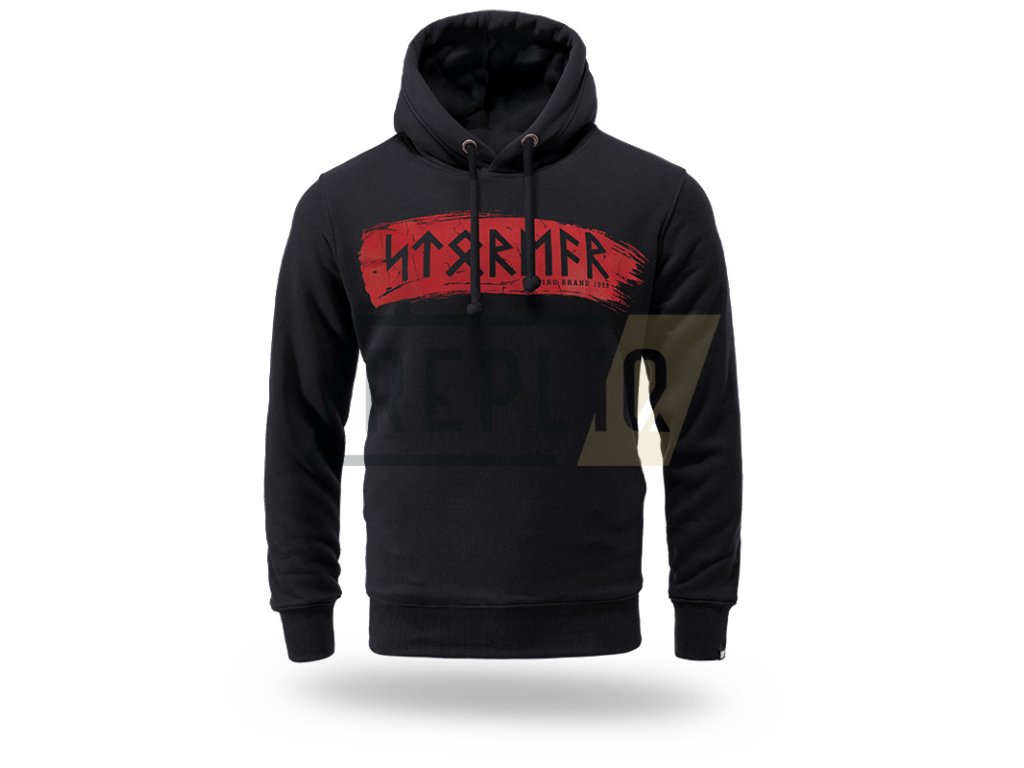 Tato mikina s velkým předním potiskem – STORMER – VIKING BRAND 1999, stylizovaným jako runová abeceda, má nastavitelnou kapuci, klokaní kapsu a žebrované manžety a lem. Vyrobena z vysoce kvalitní bavlny.