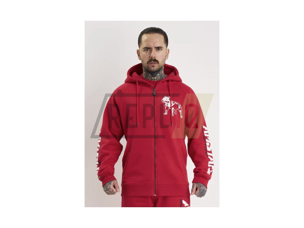 Pánská Mikina s kapucí a zipem Amstaff Logo 2.0 red/white