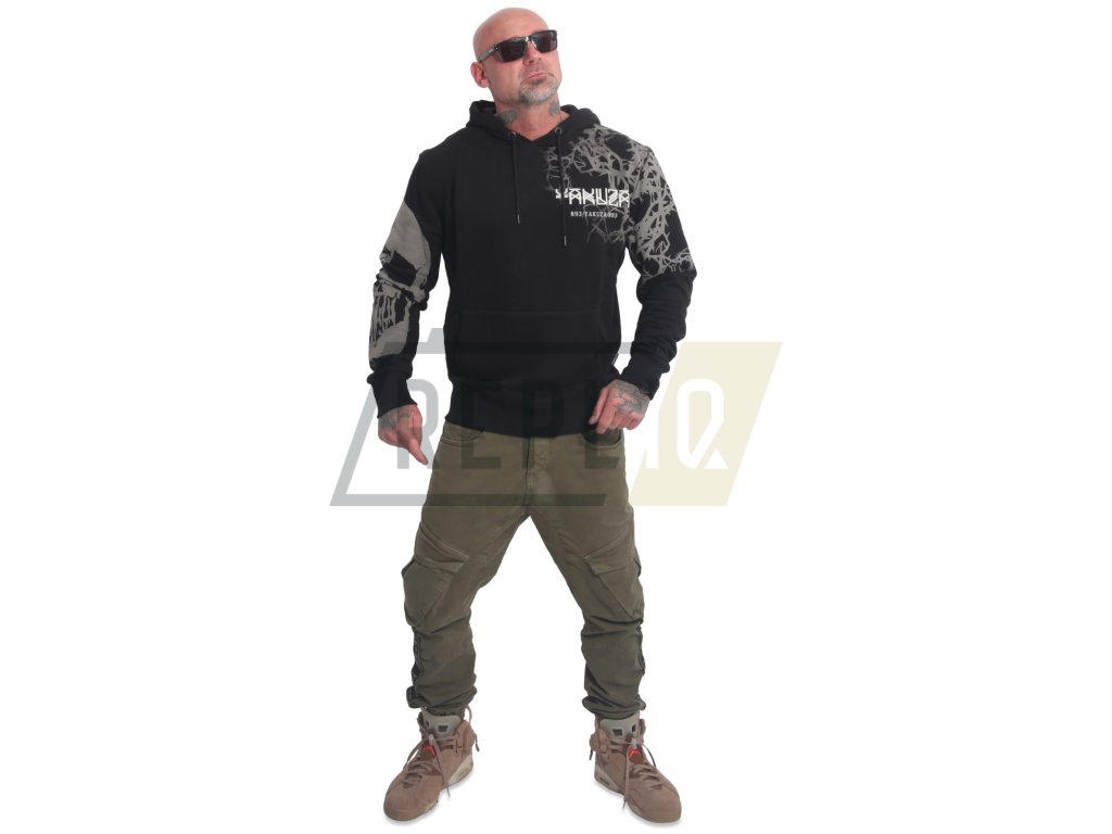 Pánská mikina s kapucí YAKUZA. Tato klasická mikina má kapuci se stahovací šňůrkou, přední kapsu a žebrované lemy. Zobrazuje vintage potisk, poutko s logem Yakuza na bočním švu a gumové poutko nad lemem. Věnujte prosím pozornost našim specifikacím velikosti a pokynům pro praní níže.