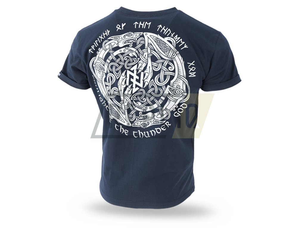 Vysoce kvalitní tričko s dvoubarevným potiskem inspirovaným skandinávskou kulturou. Zadní strana trička je zdobená vzorem, který zabírá téměř celý povrch výrobku a představuje vikingskou helmu a sekeru. Výše je velký nápis Bloodaxe, a níže heslo "I grew Up A Warriors Fan", které se opakuje na přední straně v menším měřítku. Přidáno datum 793 a dovětek Viking Comp. Použité gotické písmo a efekt popraskání potisku. Tričko s krátkým rukávem ve standardním pánském střihu, u krku zakončené stahovacím lemem a vnitřním plisováním. Na rukávu je černý štítek s logem značky.