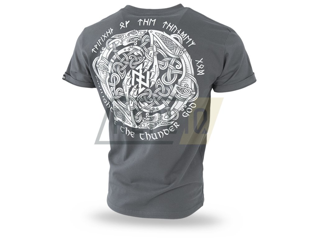 Vysoce kvalitní tričko s dvoubarevným potiskem inspirovaným skandinávskou kulturou. Zadní strana trička je zdobená vzorem, který zabírá téměř celý povrch výrobku a představuje vikingskou helmu a sekeru. Výše je velký nápis Bloodaxe, a níže heslo "I grew Up A Warriors Fan", které se opakuje na přední straně v menším měřítku. Přidáno datum 793 a dovětek Viking Comp. Použité gotické písmo a efekt popraskání potisku. Tričko s krátkým rukávem ve standardním pánském střihu, u krku zakončené stahovacím lemem a vnitřním plisováním. Na rukávu je černý štítek s logem značky.