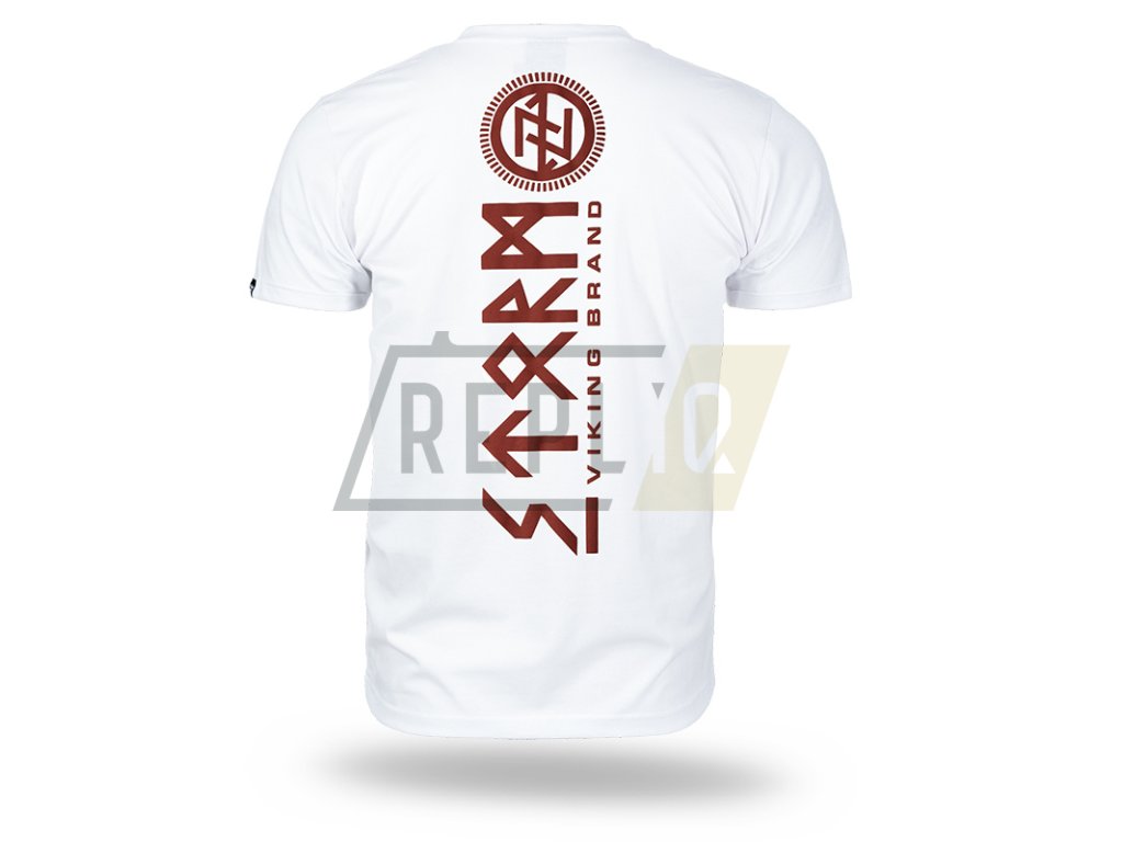 Vysoce kvalitní tričko s dvoubarevným potiskem inspirovaným skandinávskou kulturou. Zadní strana trička je zdobená vzorem, který zabírá téměř celý povrch výrobku a představuje vikingskou helmu a sekeru. Výše je velký nápis Bloodaxe, a níže heslo "I grew Up A Warriors Fan", které se opakuje na přední straně v menším měřítku. Přidáno datum 793 a dovětek Viking Comp. Použité gotické písmo a efekt popraskání potisku. Tričko s krátkým rukávem ve standardním pánském střihu, u krku zakončené stahovacím lemem a vnitřním plisováním. Na rukávu je černý štítek s logem značky.