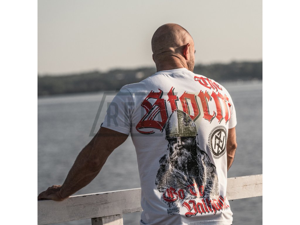 Vysoce kvalitní tričko s dvoubarevným potiskem inspirovaným skandinávskou kulturou. Zadní strana trička je zdobená vzorem, který zabírá téměř celý povrch výrobku a představuje vikingskou helmu a sekeru. Výše je velký nápis Bloodaxe, a níže heslo "I grew Up A Warriors Fan", které se opakuje na přední straně v menším měřítku. Přidáno datum 793 a dovětek Viking Comp. Použité gotické písmo a efekt popraskání potisku. Tričko s krátkým rukávem ve standardním pánském střihu, u krku zakončené stahovacím lemem a vnitřním plisováním. Na rukávu je černý štítek s logem značky.