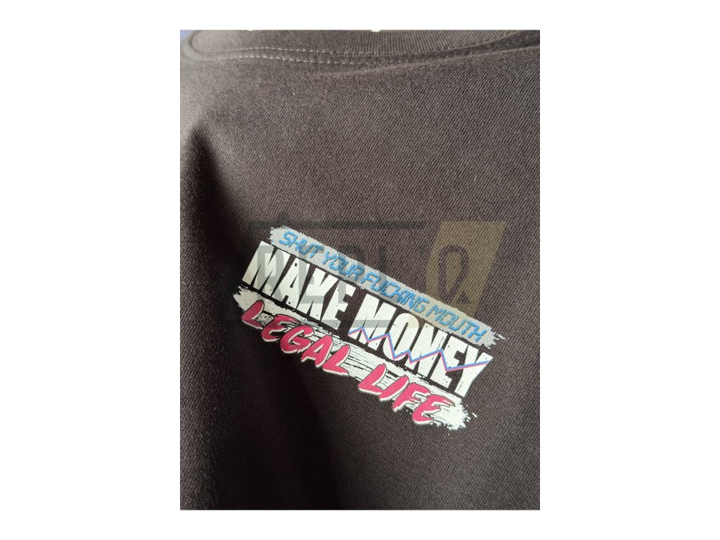 Design je decentní, potisk je vyroben moderní technologií sítotisku. Rukáv zdobí štítek znázorňující logo Legal Life dvěma k sobě otočnými písmeny LL, dole u pasu je další větší štítek s logem a baseballovou pálkou, tyto vychytávky zvedají triko na jiný level, každý štítek je vyrobený a ručně našitý u nás v ČR stejně jako potisky. Triko je velice kvalitní, při výběru textilu pro naší značku Legal Life jsme si dali velice záležet.