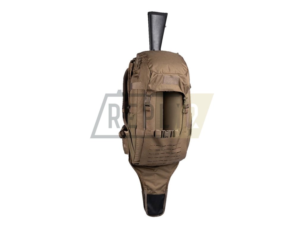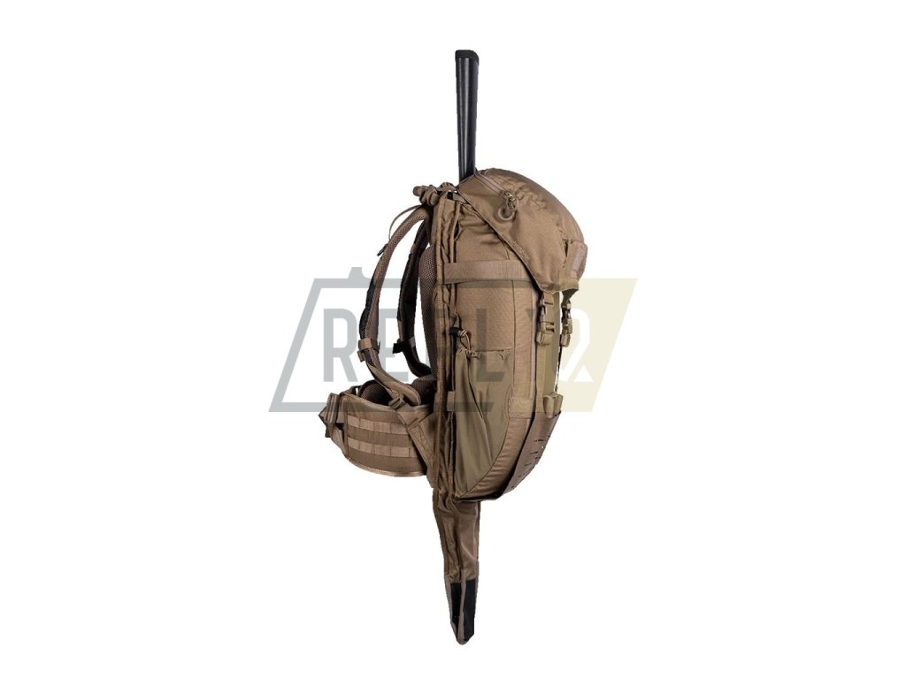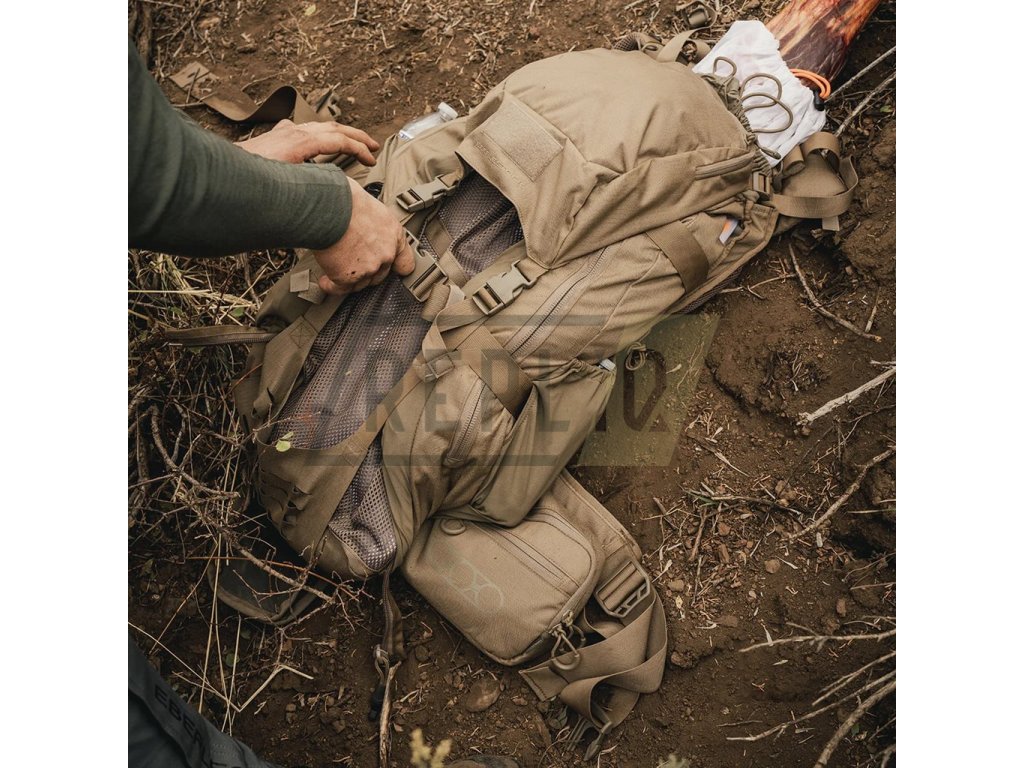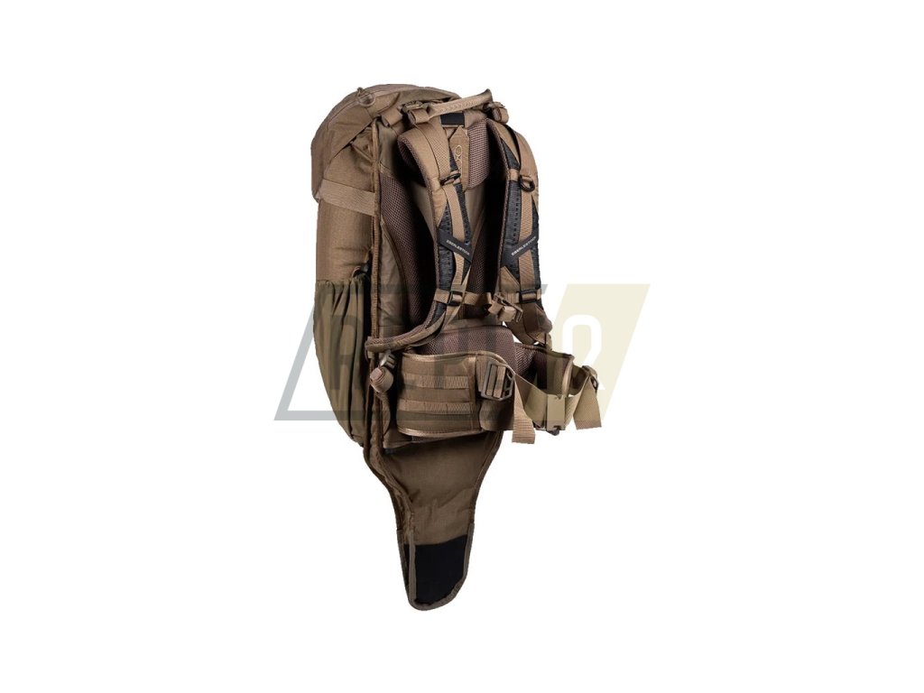 Základ batohu tvoří vnitřní tubulární hliníková kostra typu INTEX. Celý zádový systém je výškově nastavitelný dle postavy uživatele. Nosné ramenní popruhy jsou poměrně výrazně zakřivené a jsou opatřené silným polstrováním z 3D síťoviny. Hrudní popruh je elastický není problém ho výškově nastavit. Bederák je masivní, silně polstrovaný a díky tri-glide přezce je možné jej snadno stáhnout jednou rukou i během maximálního zatížení. Boky batohu jsou opatřené elastickými kapsami vhodnými pro uložení lahví, při využití spolu s horními bočními kompresními popruhy mohou posloužit pro fixaci stativů, holí a podobně rozměrných předmětů. Vrchní víko je "plovoucí" a je spojené se spodní MOLLE/PALS kompatibilní chlopní spojené pomocí plastových fastex přezek. Dvě tubulární kapsy jsou přístupné skrze přední vertikální zipy. Pokud rozepnete centrální zip batohu, je možné boční kapsy odklopit a získat tak velmi objemný vakový prostor ze síťoviny. Tento prostor obsahuje elastickou přihrádku určenou pro přenášení hydratačního vaku do 3l objemu. Vak se fixuje pomocí poutka s malou plastovou přezkou.