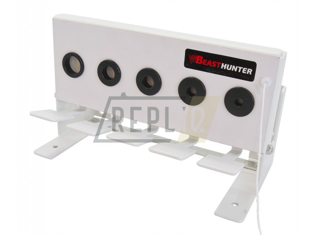 Po zasažení všech cílů není nutno ke střelnici dojít, ale stačí zatáhnout za šňůrku a manuálně tak střelnici opětovně uvést do připraveného stavu a vy můžete pokračovat ve střelbě.