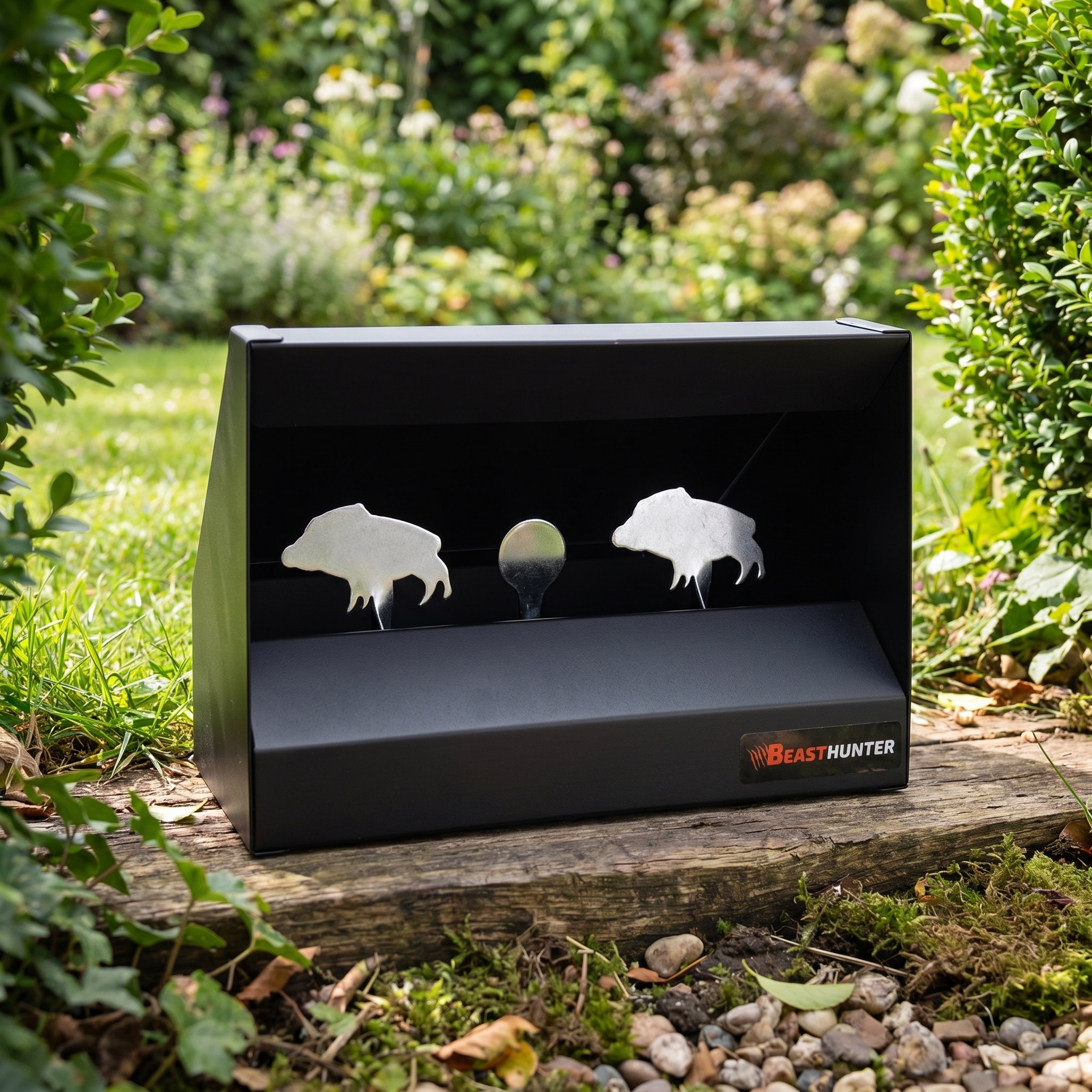 Střelnice Beast Hunter Dvě prasata – magnetická je praktická terčovnice určená pro rekreační střelbu a trénink přesnosti se vzduchovými zbraněmi. Konstrukce je navržena tak, aby nabídla jednoduché, ale zábavné použití při střelbě na sklopné kovové cíle. Motiv dvou prasat dodává celé střelnici originální vzhled a zároveň přináší atraktivnější formu tréninku než klasický papírový terč.