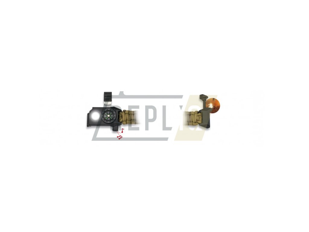 Lehký paracordový náramek s kompasem, nouzovou píšťalkou, malou svítilnou a nouzovým křesadlem. Náramek má délku 24,5 cm a je vyrobený z odolného nylonu. Hmotnost: 41 g