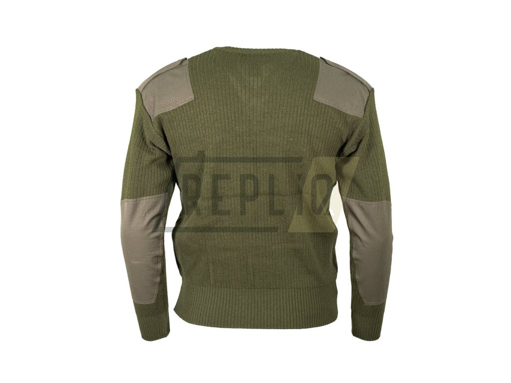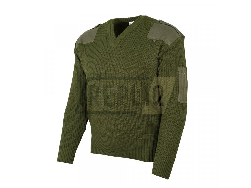 Pohodlný originální armádní italský svetr vyrobený ze směsi vlny (50 %) a akrylu - vlna dodává vysokou hřejivost a odolnost, akryl zase větší komfort nošení (je příjemnější na dotek). Svetr je zesílený v oblasti ramen a loktů/předloktí. Na levém rukávu kapsa na tužky.