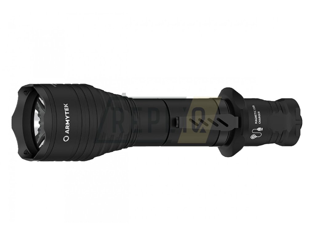 Taktická svítilna nové generace Armytek Viking PRO vytváří široký parsek studeného světla s velkým centrálním bodem a širokým bočním rozptylem, který lze přepínat v 6 režimech, včetně jednoho stroboskopového. Při nejvyšším nastavení dosahuje paprsek světelného výkonu až 2200 lumenů při dosvitu až 288 metrů. Přepínání režimů je příjemné a bezhlučné díky vypouklému dvoupolohovému tlačítku.Ergonomické tělo svítilny vyrobené z leteckého hliníku má matné provedení - díky čemuž nevytváří odlesky a je zbaveno jakýkoliv ostrých hran a výstupků pro zajištění pohodlného držení. Kromě toho poskytuje ochranu před vodou, nečistotami a prachem podle normy IP68, takže svítilna je schopna fungovat i po zanoření do hloubky 25 metrů nebo po pádu z 10 patra. Poradí si také se zpětným rázem každého kalibru.