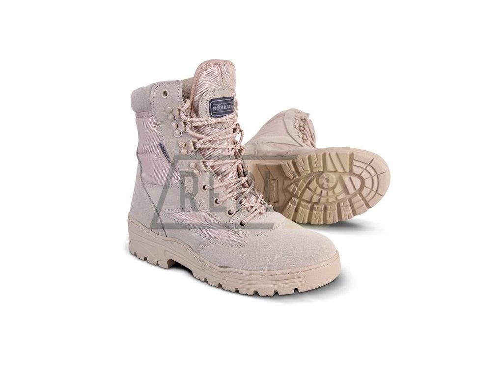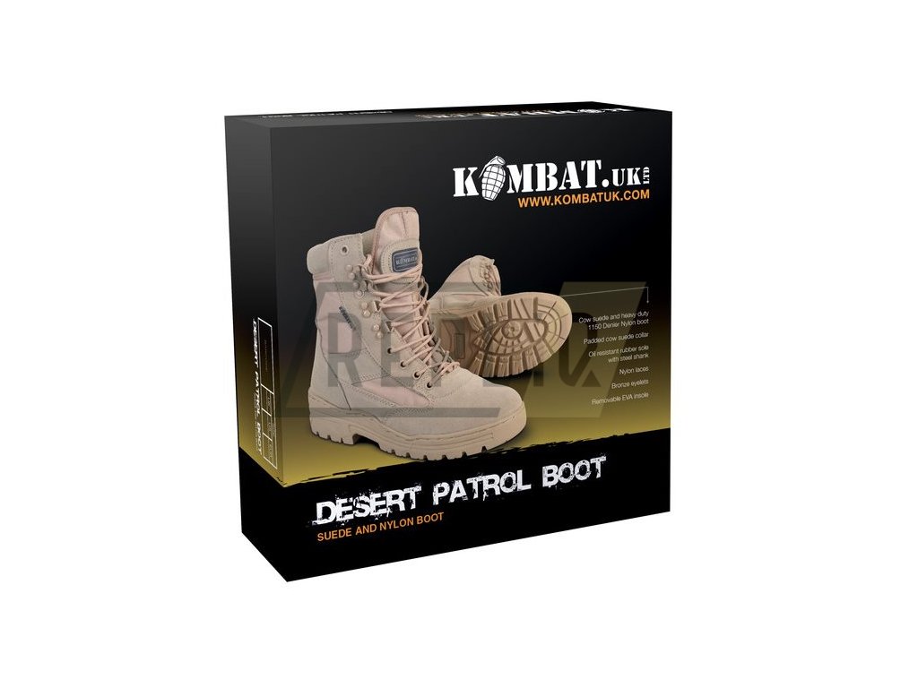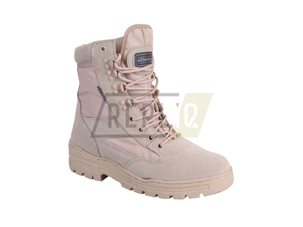 Pevné taktické boty v pouštní barvě. Svršek boty je vyrobený z kombinace hovězího semiše a odolného 1150D nylonu. Podšívka boty je příjemná na omak, odnímatelná stélka je z měkké EVA pěny. Gumová podrážka dobře tlumí otřesy a má protiskluzové vlastnosti. Tkaničky boty jsou nylonové, horní očka jsou z bronzu.
