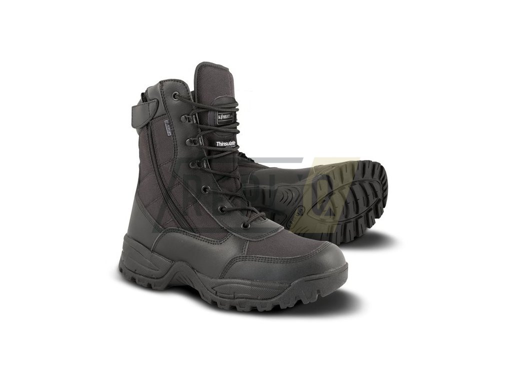 Kvalitní taktické boty vhodné do náročného terénu. Svršek boty je vyrobený z 1000D nylonu, který nabízí vysokou mechanickou odolnost při zachování poměrně nízké hmotnosti. Vnitřní podšívka je příjemná na dotek, skvěle odvádí pot a přebytečné teplo z nohy. Stélka je odnímatelná. Podrážka je z EVA materiálu. Ten se vyznačuje nízkou hmotností, odolností vůči UV záření, snadnou údržbou a vysokou tlumivostí, kterou oceníte především během dlouhých cest. Na boku boty se nachází YKK zip umožňující rychlé sejmutí bot z nohy. Zip je dodatečně jištěný páskem se suchým zipem.