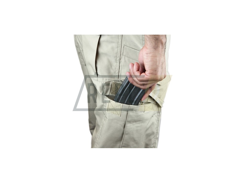 Na kalhotách najdete celkem deset kapes. Dvě šikmé kapsy na ruce jsou poměrně hluboké, obsahují přihrádku na mince a mají zesílené okraje. Nemusíte se tedy bát, že klip vloženého nože rychle poškodí materiál. Vedle kapes na ruce najdete menší otevřené kapsičky, které jsou ideální na uložení psacích potřeb a jiných drobnosti. Další dvojice plochých kapes, kterou najdete pod kapsami na ruce, se uzavírá pomocí chlopně na suchý zip. Velké cargo kapsy, taktéž uzavírané pomocí chlopně se suchým zipem, bez problémů pojmou i větší předměty a v jejich vnitřku najdete dvojici menších přihrádek na zásobníky. Poslední dvojici předních kapes naleznete na lýtkách. Ty jsou velikostně menší (přibližně na pistolový zásobník) a zavírají se pomocí chlopně se suchým zipem. Zadní kapsy kalhot jsou široké, v klidu pojmou vaší peněženku, smartphone či doklady.