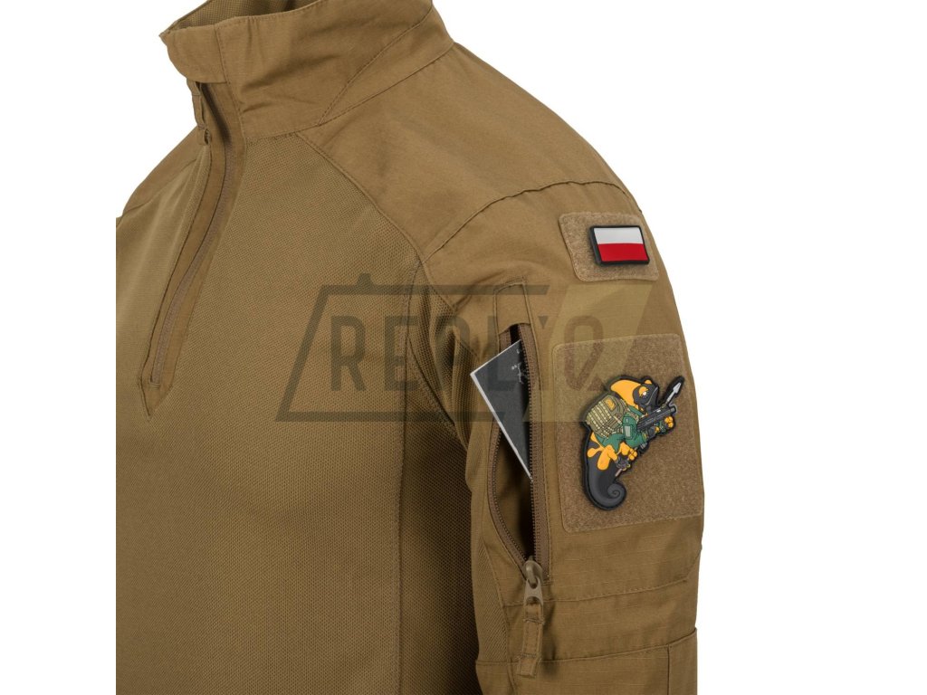 Taktická košile MCDU od oblíbené značky HELIKON-TEX vhodná do teplého počasí jako doplněk k nosičům plátů a chestrigům.. Její středová část je vyrobena z lehké a hlavně extrémně prodyšné látky TopCool, zatímco rukávy, manžety a límec jsou vyrobeny z odolného materiálu NYCO v rip-stop úpravě. Na rukávech naleznete malou plochou kapsu uzavíranou zipem. Ta je vhodná na drobnější výbavu jako je mapa, GPS přijímač či chytrý telefon. Kromě kapes jsou také rukávy košile opatřené dvojicí VELCRO panelů, které poslouží pro vaše nášivky. Rukávy se dají v oblasti zápěstí velikostně nastavit pomocí pásků na suchý zip. Středový YKK® zip košile začíná v oblasti hrudníku a je na svém konci opatřen chráničem.