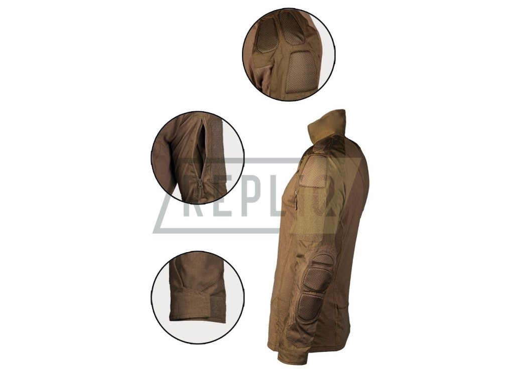 Pohodlná taktická košile od německého vyrobce MIL-TEC. Košile je v oblasti ramen a loktů polstrována, přičemž posltrování na ramenou je opatřeno výstupky pomáhající fixovat vybavení jako je batoh apod. Košile má stojáčkový límec s rozepínáním pomocí YKK zipu. V oblasti bicepsů najdete dvě kapsy, které jsou vhodné k odvětrávání přebytečného tepla, popřípadě uložení menších dokumentů. Rukávy jsou v oblasti zápěstí nastavitelné pomocí manžety se suchým zipem.