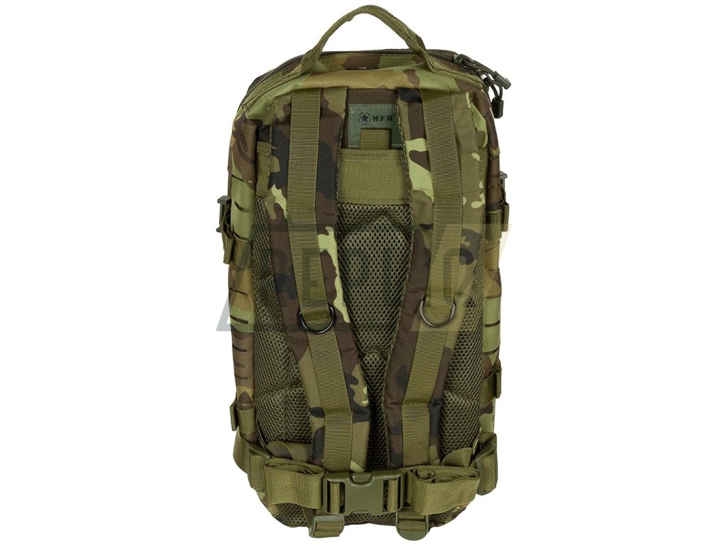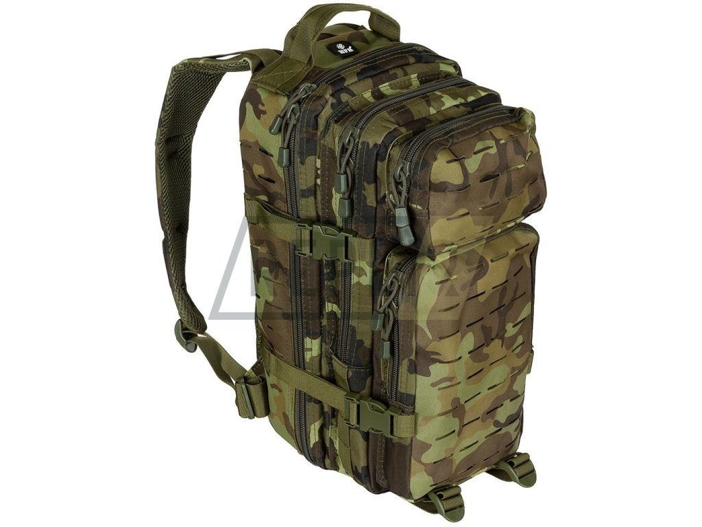 Malý taktický batoh o objemu cca 30 l od firmy MFH s laserem vyřezanou vazbou pro MOLLE.