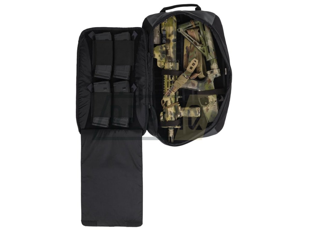Nenápadný batoh civilního vzhledu určený pro skryté nošení dlouhé palné zbraně. Rozměrově určený pro samopaly se sklápěcí/zasouvací pažbou (MP5, CZ Scorpion EVO 3, Stribog atd.) nebo rozložené karabiny typu AR15 s krátkou hlavní (SBR). Přístup ke zbrani zajišťuje dvoucestný zip a do strany vyklápěcí přední víko. Na vnitřní straně víka se nachází flaušová podšívka s přichycenými elastickými držáky pro zásobníky a polstrovaná přepážka, která je odděluje od uložené zbraně. Na straně zad je vnitřní prostor opatřen kombinací flaušové podšívky, modulární vazby standardu PALS/MOLLE a svislých pruhů s okénky k provlečení jistících pásků pro fixaci polohy zbraně uvnitř batohu. Ramenní popruhy je možné díky přezkám fastex rozpojit a ukrýt v zádové přihrádce. K přenášení takto vzniklé "aktovky" lze použít dvě přenášecí madla. K uložení drobností či dokumentů slouží čelní kapsa se zipem.