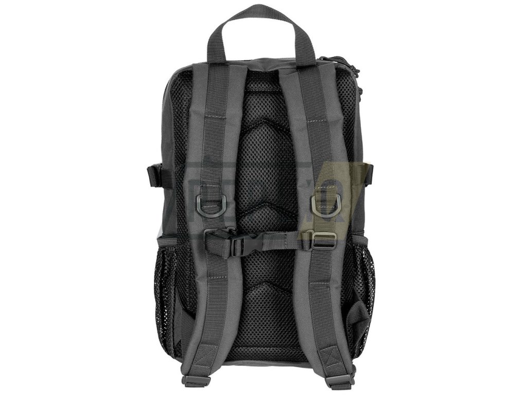 Zádový systém tvoří anatomicky tvarované ramenní popruhy. Ty jsou délkově nastavitelné, polstrované, opatřené plastovými D kroužky a hrudním popruhem spínaným fastex přezkou. Záda jsou bohatě polstrována prodyšnou 3D síťovinou. Nad popruhy naleznete jednoduché přenášecí madlo. Na bocích batohu naleznete kompresní popruhy spínané fastex přezkou a kapsy ze síťoviny ideální pro vložení láhve s vodou. Na čelní straně batohu naleznete dvě kapsy přístupné skrze dvoucestný zip. Větší kapsa je z vnejší části pokrytá MOLLE/PALS vazbou, menší kapsa je pošitá pruhem suchého zipu pro jmenovky a VELCRO nášivky. Přední oddělení disponuje vnitřním organizérem s několika pruženkami a přihrádkami. Uvnitř zadního oddělení naleznete kapsu ze síťoviny.
