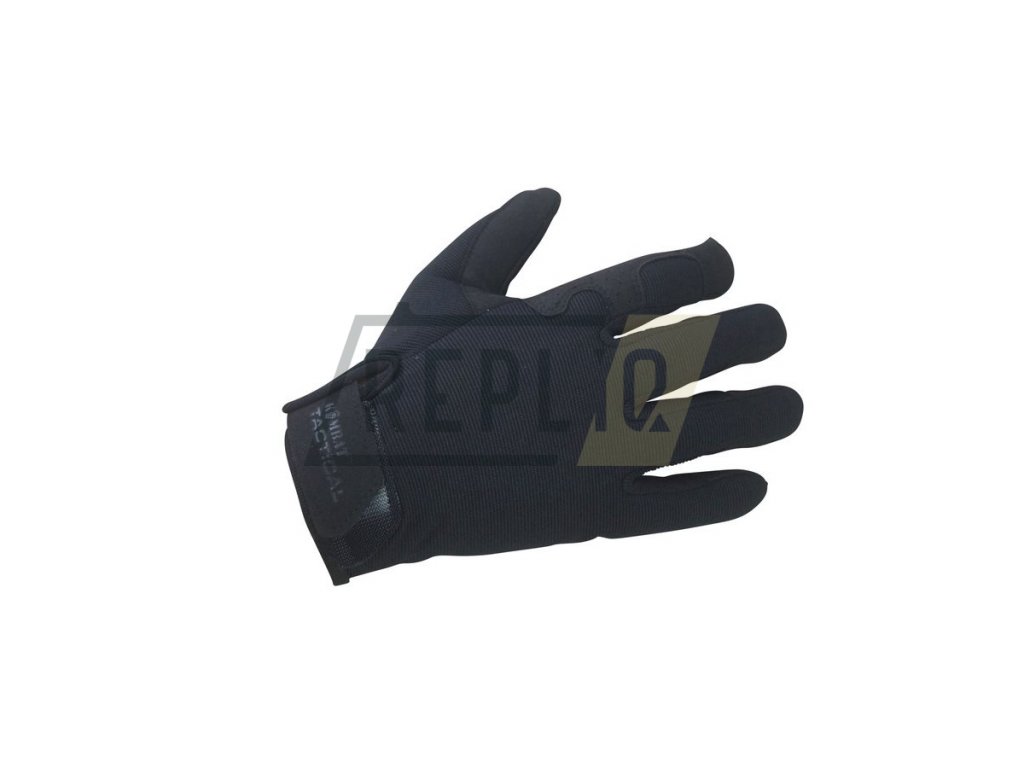 Lehké a prodyšné taktické rukavice. Tělo rukavic je vyrobené z elastického neoprenu, který příjemně obepne vaší ruku aniž by jakkoli omezoval pohyb. Dlaň je pokryta jemným a prodyšným semišem, který je na ukazováku a palci doplněný o umělou kůži kompatibilní s dotykovými displayi. Zápěstí rukavic je velikostně nastavitelné pomocí pásku se suchým zipem.