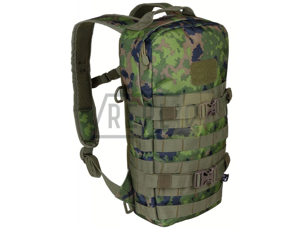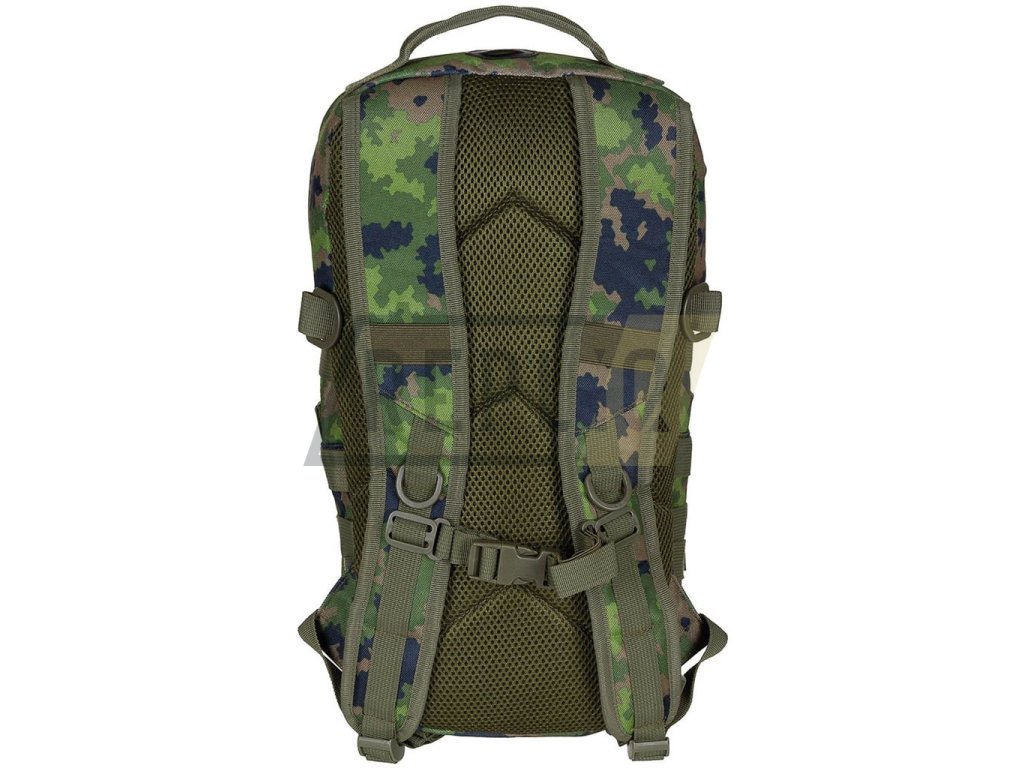 Ramenní popruhy jsou délkově nastavitelné, lehce polstrované, opatřené průvleky na hadičku hydratačního vaku, plastovými D kroužky a výškově nastavitelným hrudním popruhem, který je spínaný pomocí plastové fastex přezky. Záda jsou polstrovaná pomocí 3D síťoviny. Na hodní straně se nachází jednoduché přenášecí madlo. Na bocích se nachází čtyři řady MOLLE/PALS vazby, malá kapsa uzavíraná pomocí suchého zipu a dvojice kompresních popruhů spínaných plastovou přezkou. Na přední části batohu naleznete další modulární vazbu a malý panel suchého zipu pro vaše VELCRO nášivky. Interiér batohu je přístupný skrze dvoucestný zip opatřený táhly. Uvnitř se nachází přihrádka na hydratační vak, fixační poutko a otvor na provlečení hadičky.