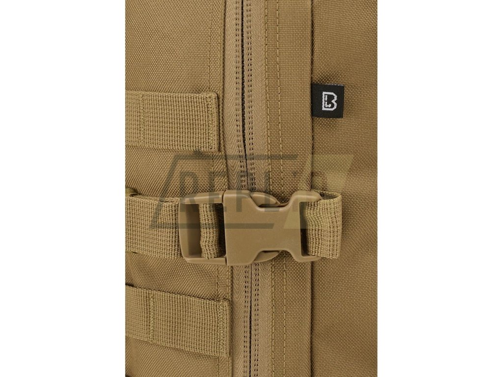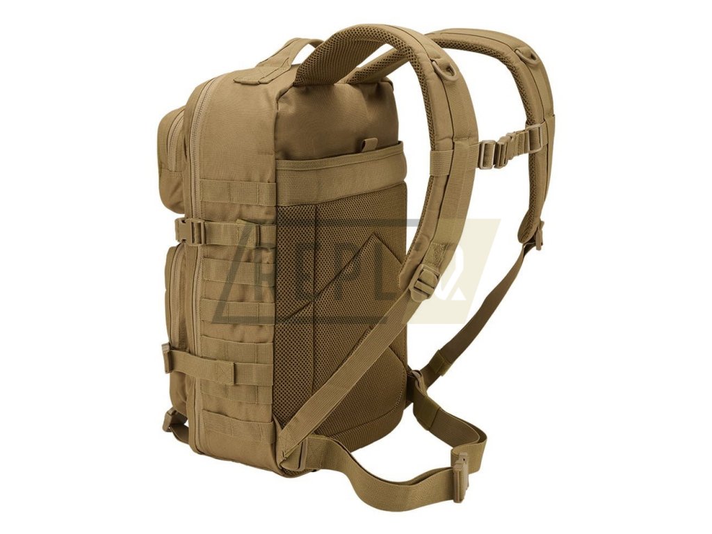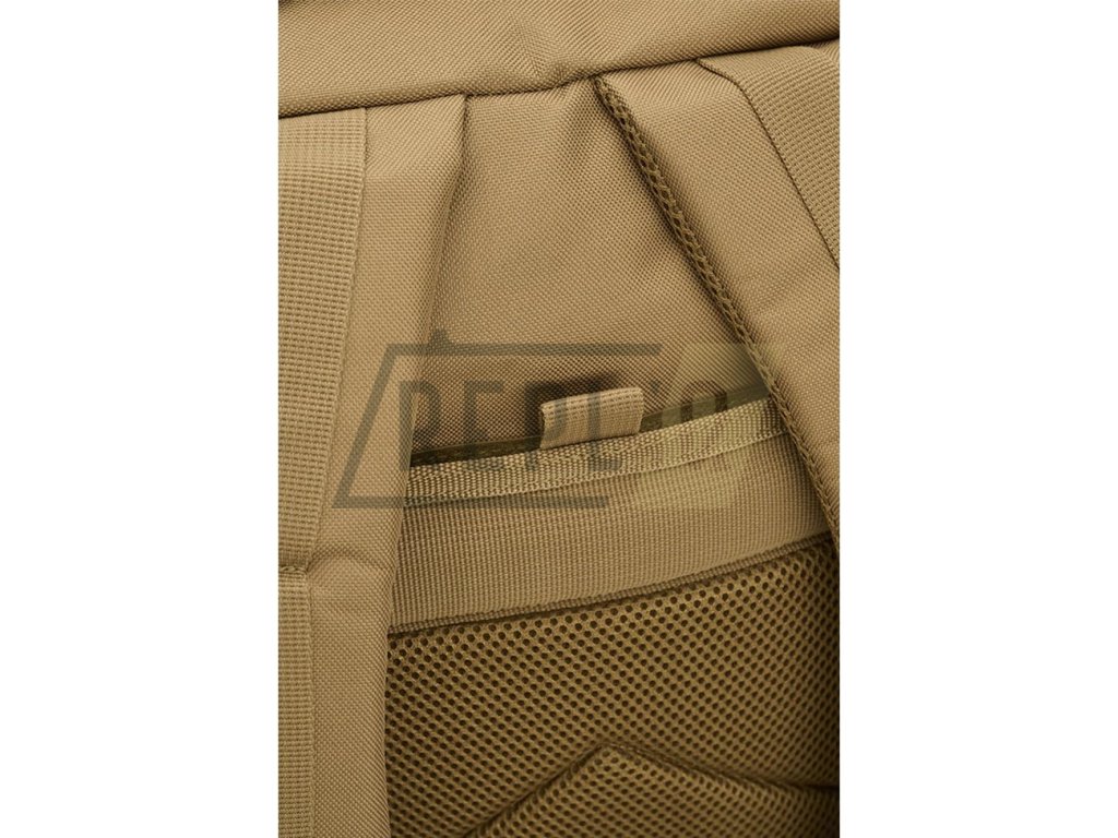 Záda batohu jsou lehce polstrovaná, obsahují kapsu vhodnou k vložení hydratačního vaku a v horní části jsou opatřena madlem pro snadné přenášení. Nosné popruhy jsou výškově nastavitelné, anatomicky tvarované, polstrované, opatřené 3D síťovinou a elastickým hrudním popruhem spínaným plastovou fastex přezkou. Na bocích batohu se nachází široká MOLLE/PALS vazba sloužící k připevnění kompatibilních sumek a dalšího vybavení. Kromě vazby se na boku nachází i dvojice kompresních popruhů.