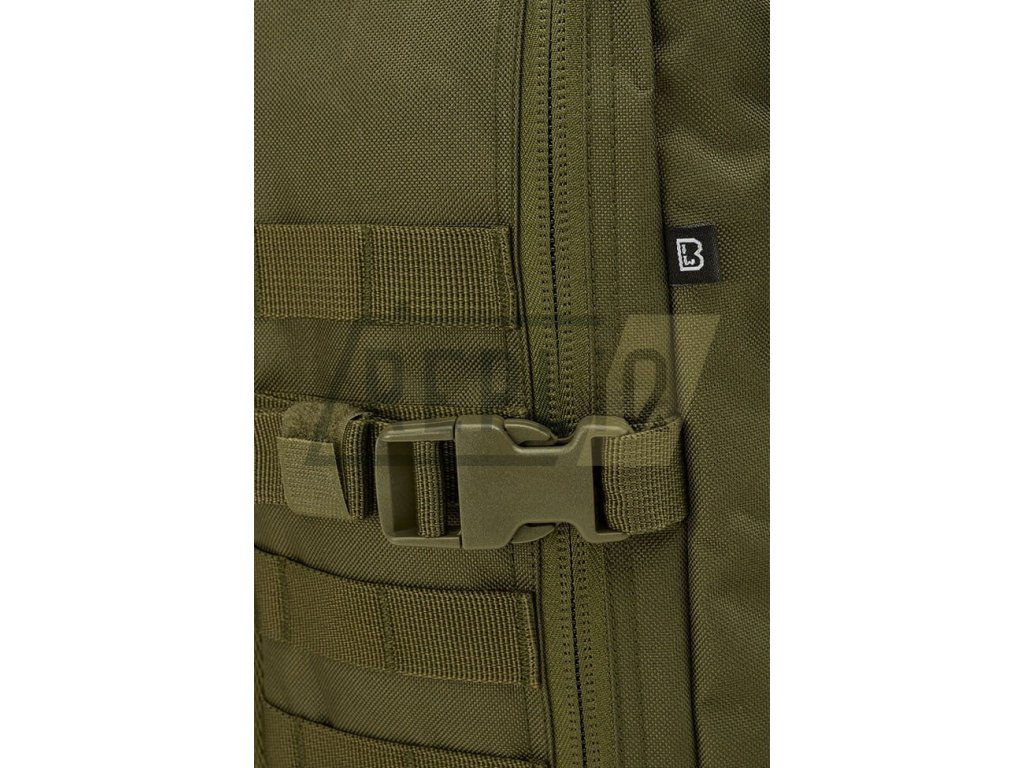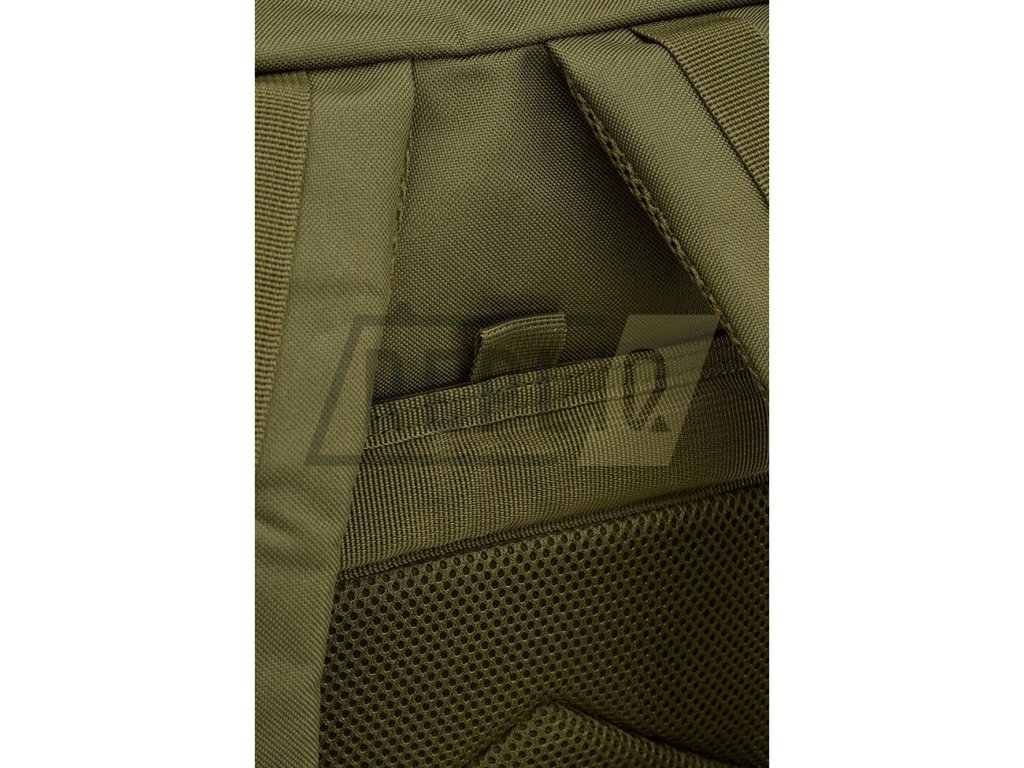 Záda batohu jsou lehce polstrovaná, obsahují kapsu vhodnou k vložení hydratačního vaku a v horní části jsou opatřena madlem pro snadné přenášení. Nosné popruhy jsou výškově nastavitelné, anatomicky tvarované, polstrované, opatřené 3D síťovinou a elastickým hrudním popruhem spínaným plastovou fastex přezkou. Na bocích batohu se nachází široká MOLLE/PALS vazba sloužící k připevnění kompatibilních sumek a dalšího vybavení. Kromě vazby se na boku nachází i dvojice kompresních popruhů.