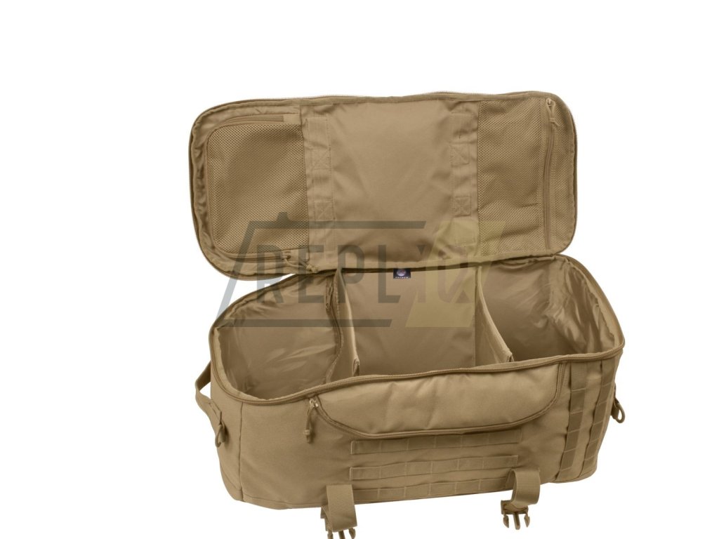 Hlavní kapsa se otevírá pomocí zipu, který je skoro po celém obvodu a umožňuje tak snadný přístup k zabaleným věcem. Jezdci zipu mají očka, kterými lze pro zabezpeční provléknout malý zámeček. Hlavní kapsa se dá pomocí dvou panelů a zipů rozdělit na tři samostatná oddělní. Uprostřed pak najdete popruh s plastovou sponou, který vám umožní věci v tašce lépe zajistit. Ve vnitřní části víka jsou dvě ploché síťované kapsy na zip. Na vnější straně víka jsou kromě madla pro přenášení tašky i 2 + 3 řady MOLLE popruhů a další kapsa na dvoucestný zip. Ta je ideální pro věci, které potřebujete mít při ruce - letenky, doklady, peněženku, ale třeba i litrovou láhev s pitím.