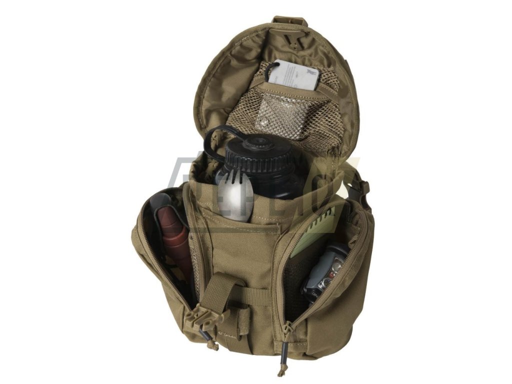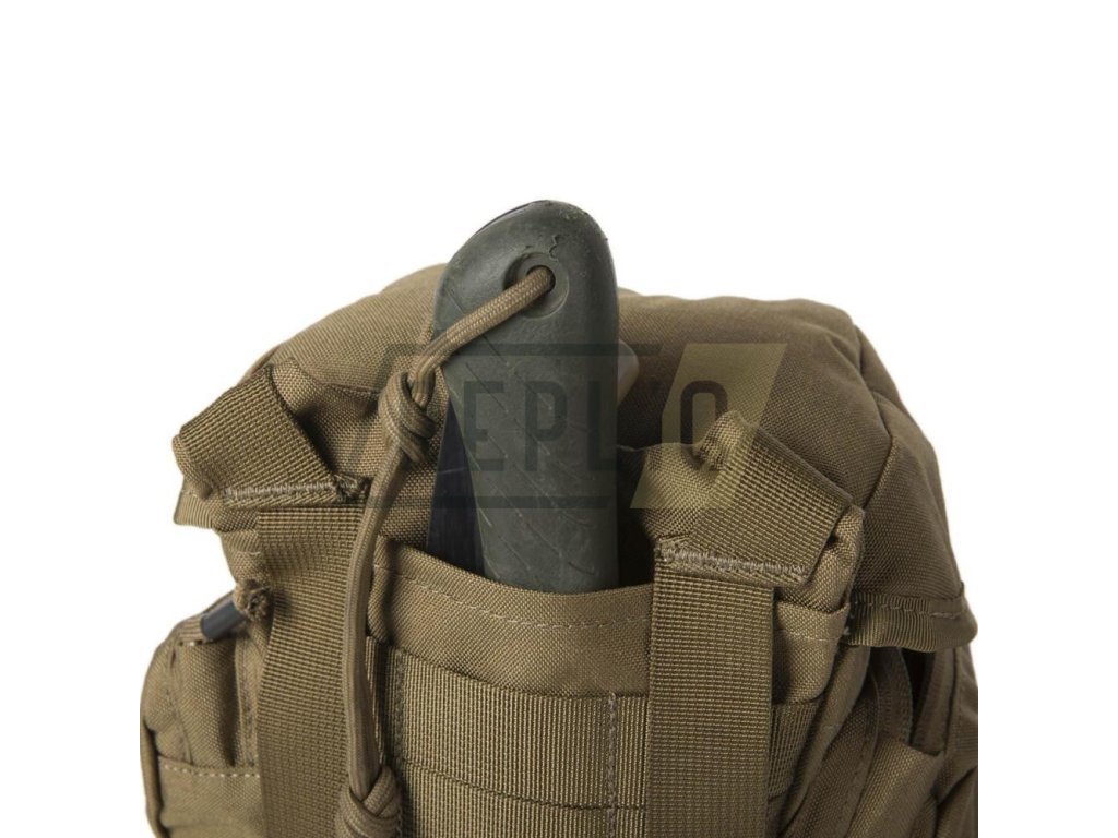 Hlavní kapsa má v horní obrubě provléknutou pruženku, můžete ji tak stáhnout podle potřeby. Hlavní kapsa pojme většinu lahví o objemu 1 litr včetně odpovídajícího hrnku/pítka (Nalgena, US pítko). Na zadní straně je umístěna plochá kapsa, do které můžete umístit třeba skládací vařič typu postýlka. Ve vnitřní části víka najdete další plochou síťovanou kapsu, ideální např. pro uložení tablet na čištění vody.