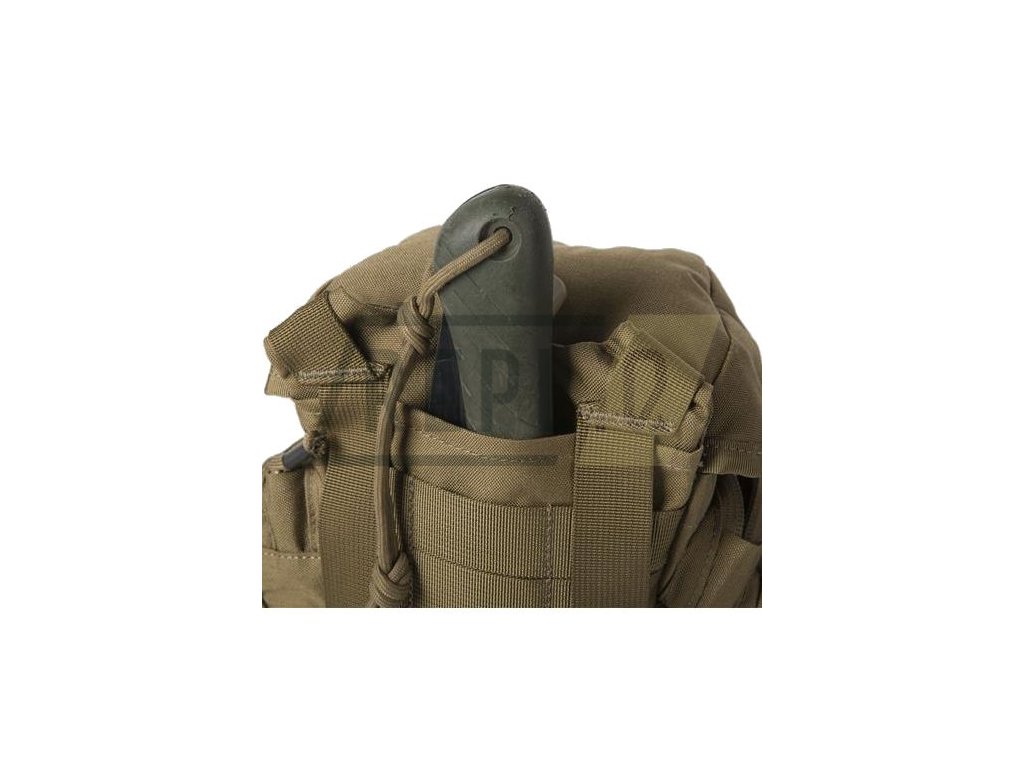 Na bocích jsou dvě kapsy na zip, uvnitř s okem ze šňůry a plochou síťovanou kapsou na menší svítilnu, křesadlo nebo podpalovač, zápalky, kompas, nouzovou fólii apod.