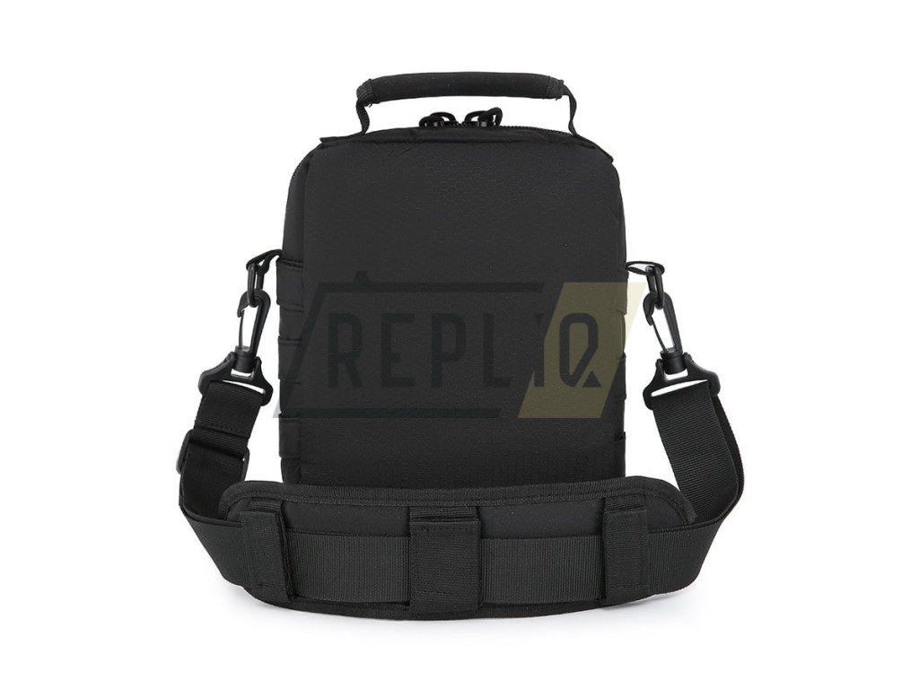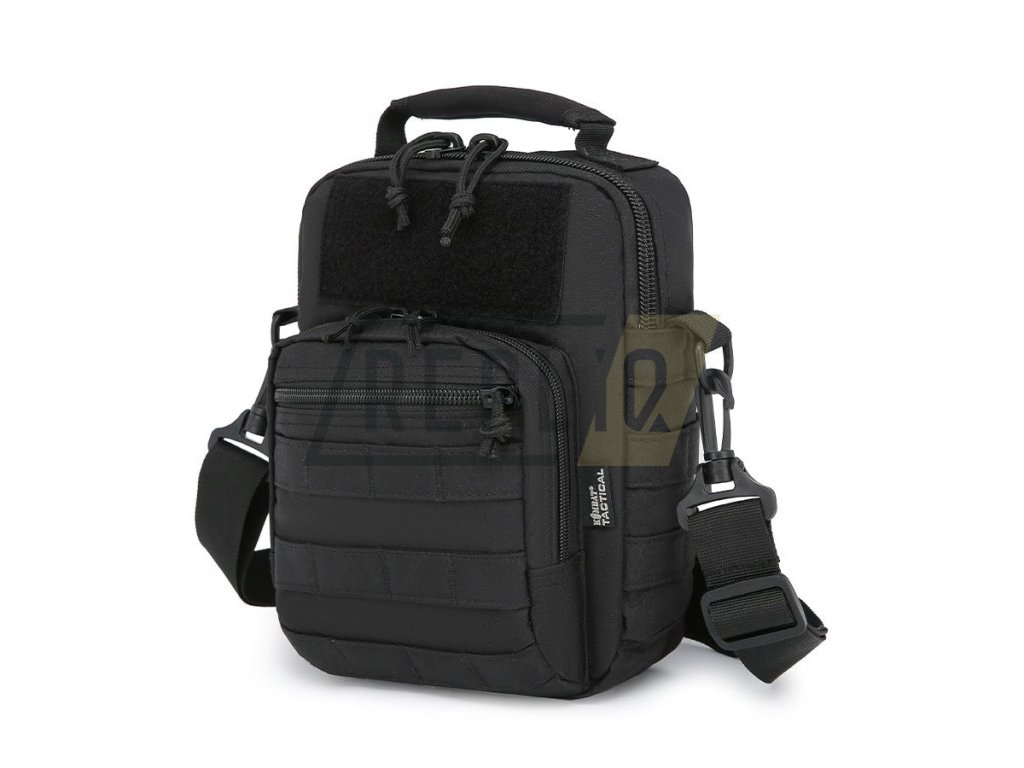 Odepínatelný nosný popruh tašky je k plastovým D kroužkům fixován pomocí karabinek, je délkově nastavitelný a opatřený odnímatelným polstrovaným segmentem. Na bocích tašky naleznete modulární vazbu standardu MOLLE/PALS, která lze využít k připevnění malých pouzder či k zavěšení karabin či psacích potřeb. Na čelní straně se nachází další modulární vazba a dvě kapsy přístupné skrze zip. Na horní části tašky naleznete pruh suchého zipu pro vaše VELCRO nášivky a neoprenové přenášecí madlo. Hlavní úložný prostor je přístupný skrze dvoucestný zip a v jeho vnitřku naleznete integrované pouzdro na uložení pistole.