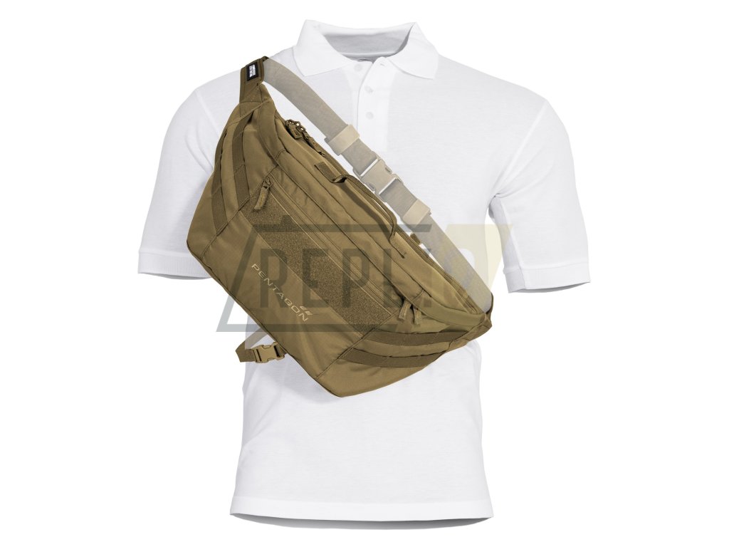 Taška má délkově nastavitelný nosný popruh spínaný pomocí odolné DuraFlex® přezky. Boky tašky jsou pošity dvěma řadami MOLLE/PALS vazby, není tak problém připojit další kompatibilní vybavení jako jsou sumky či nože. Přední kapsa tašky je plochá a opatřená širokým pruhem suchého zipu. Tato kapsa je ideální na přenášení mobilních telefonů a jiného, rozměrem podobného vybavení. Hlavní úložný prostor je dostatečně prostorný na přenášení litrových láhví a pro zlepšení organizace uvnitř najdete dvojici síťovaných kapes a malou plastovou karabinku. Za hlavním úložným prostorem se nachází kapsa zevnitř pošitá měkkým flaušem, které je po vložení kompatibilního insertu určená k přenášení zbraně služební velikosti. Poslední kapsu naleznete v zadní části tašky. Ta je přístupná skrze zip a bez problémů pojme vaší peněženku, doklady či dokumenty do velikosti A4.