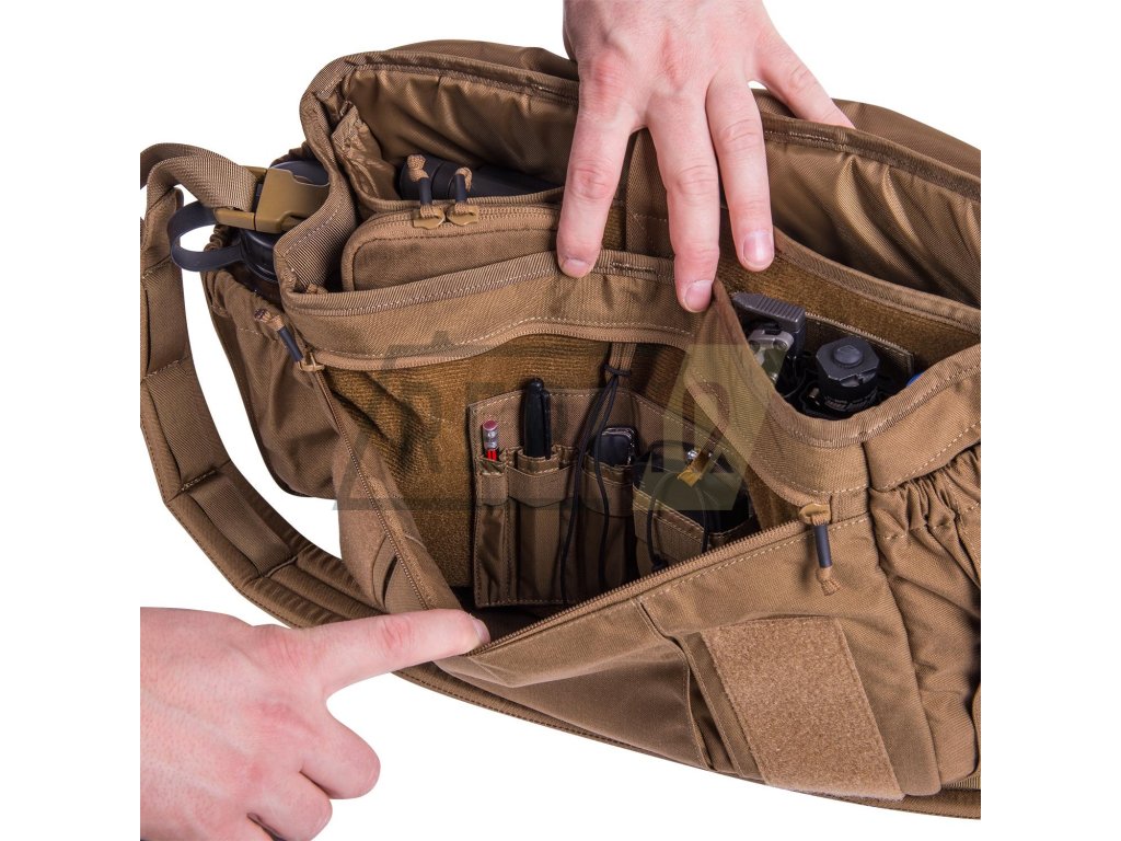 URBAN COURIER klade důraz na estetiku, stejně jako kvalitu šití a látky. Taška disponuje odepínatelným ramenním popruhem a doplňkovým odepínacím bederním pásem, takže je snadné ji přizpůsobit tělu a aktivitě. Velká pozornost byla věnována i vnitřnímu rozložení kapes. Hlavní kapsa, která pohodlně pojme váš notebook je oddělená a zabezpečená pomoci suchého zipu. Další kapsa, tentokrát schovaná ve víku je uzavíratelná zipem a uvnitř najdete VELCRO panel na který jde připojit celá řada organizérů značky Helikon-Tex.