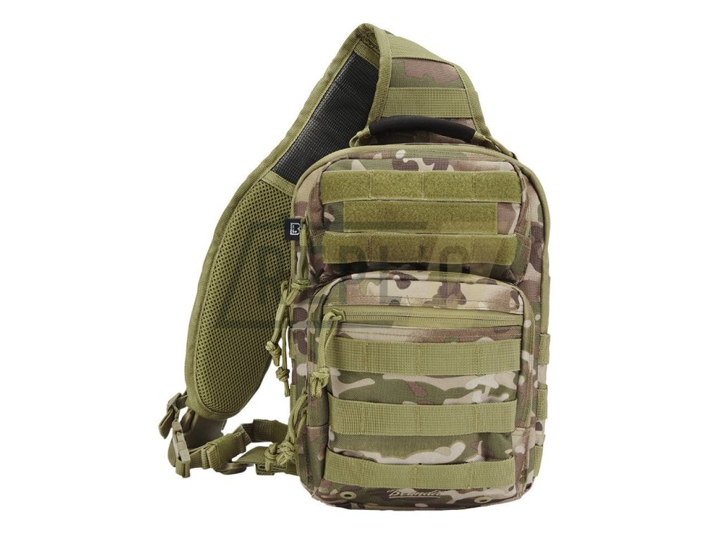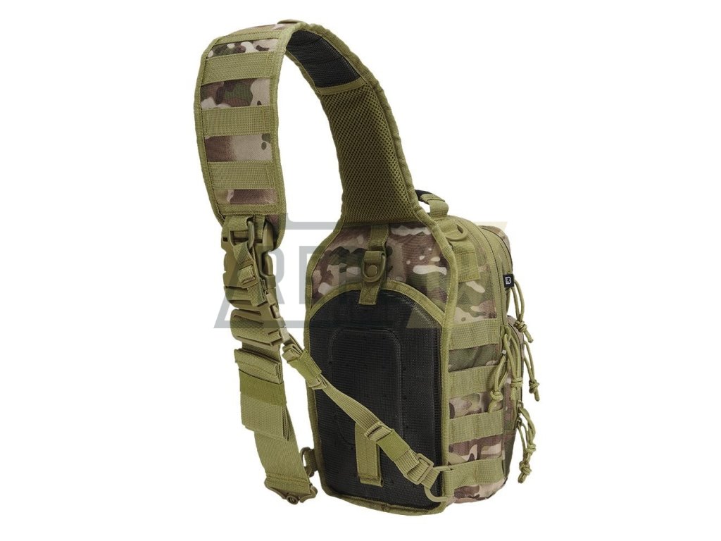 Délkově nastavitelný nosný popruh je z velké části polstrovaný pomocí 3D síťoviny, opařený protiskluzem, plastovými D kroužky, pruženkami a kapsou na smartphone o maximální velikosti 8 x 16 cm. Zapínání popruhu je řešeno pomocí plastové přezky. Boční stabilizační popruh je také zapínaný přezkou a v případě potřeby lze odepnout. Na čelní straně naleznete dvě kapsy. Horní kapsa je z vnější strany pokrytá MOLLE/PALS vazbou kombinovanou se suchým zipem pro umístění vašich VELCRO nášivek. Zapíná se jednocestným zipem a v jejím vnitřku naleznete tři pruženky a jednu plochou kapsu na drobné dokumenty. Spodní kapsa je také pokryta modulární vazbou, disponuje vnější plochou kapsou a vnitřním prostorem bez členění. Hlavní kapsa je přístupná skrze dvoucestný zip a uvnitř naleznete elastickou přihrádku s pruženkou fixovanou suchým zipem. Další dvě kapsy se nachází na přední straně hlavní komory. Poslední přihrádku naleznete na zadní straně tašky. Ta je z vnější straně opatřena protiskluzem a do svého interiéru pojme tablet o maximální velikosti 16 x 27 cm.