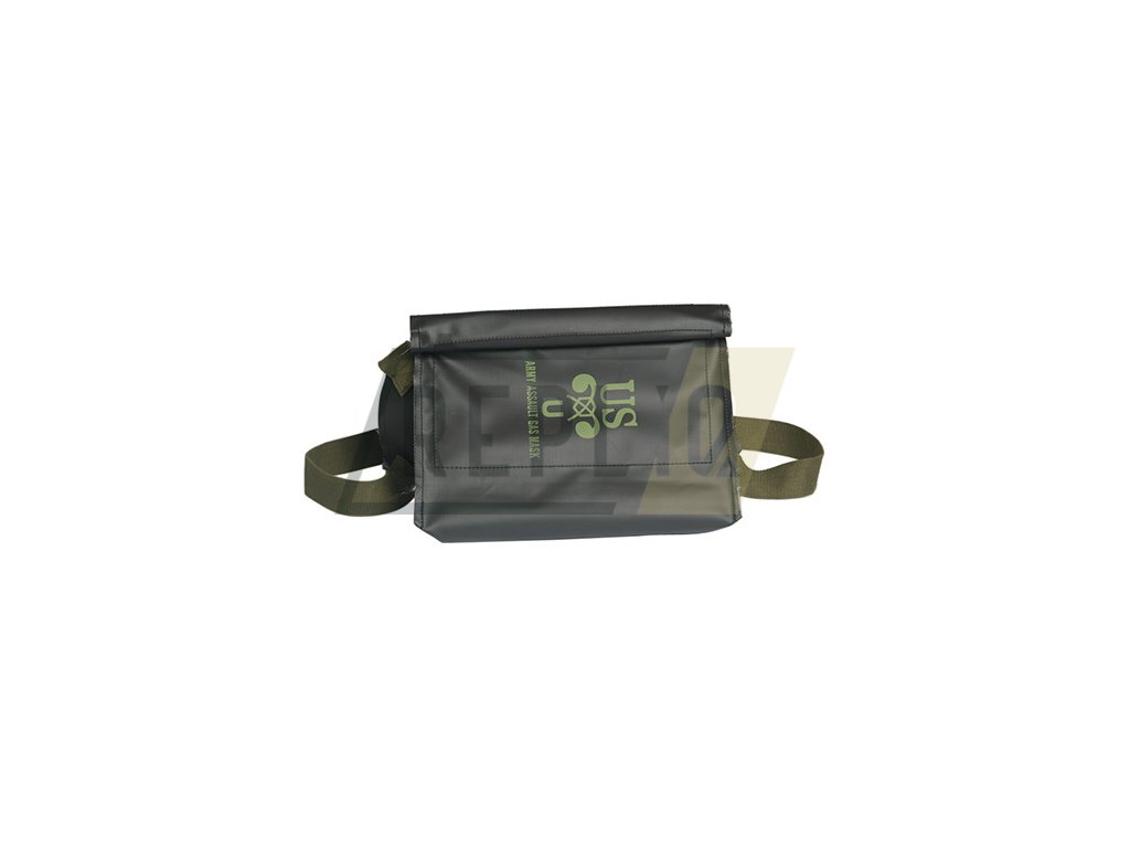 Kvalitní reprodukce pogumovaného obalu M7 na plynovou masku vzor M5. Tento typ pogumované černé brašny je často viděn na fotografiích z vylodění v Normandii, výsadku Rangers na Pointe du Hoc, nebo u příslušníků US Airborne za 2. světové války (WWII).