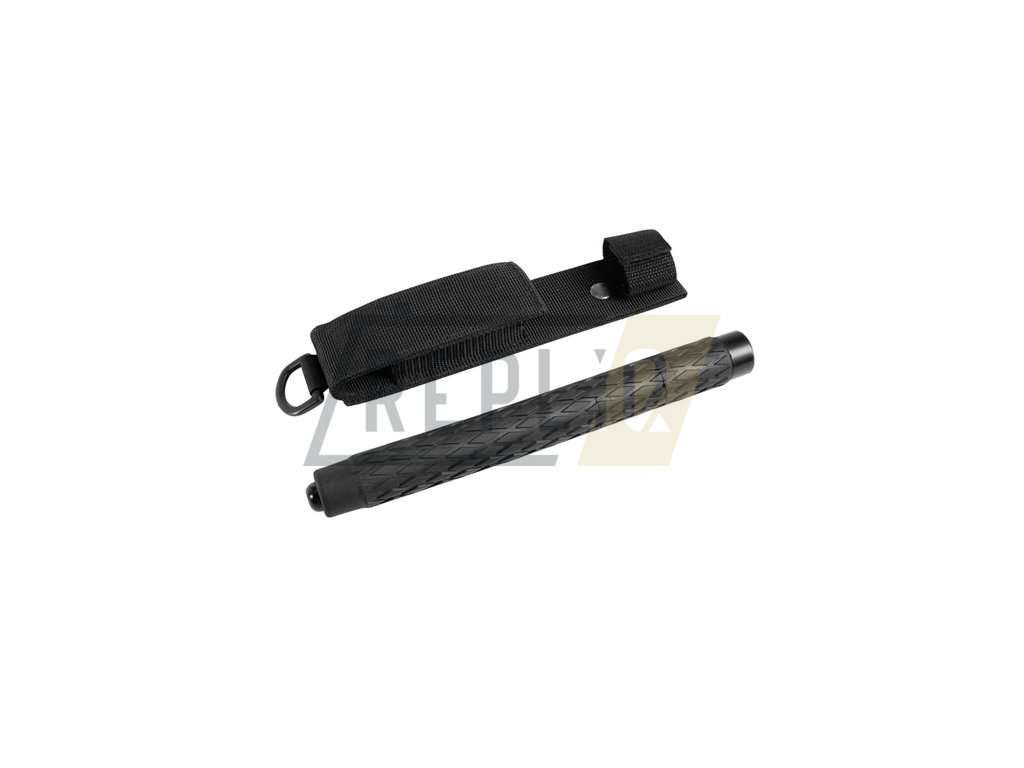 Nekalený teleskopický obušek Protiskluzová gumová rukojeť Celočerné provedení. Délka 56 cm. Dodáváno s nylonovým pouzdrem pro zavěšení na opasek.