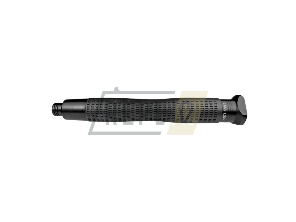 Tento obušek otevřete švihem rukojeti do volného prostoru, nebo můžete teleskopické trubky vysunout tahem za špičku. Zámkový mechanismus trubky pevně zajistí v otevřeném stavu.