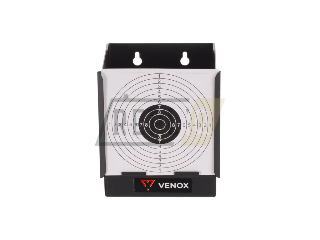 Okénko na přední straně je uzpůsobeno na papírové terče o rozměrech 14x14 cm. V balení dokonce jeden takový terčík najdete.