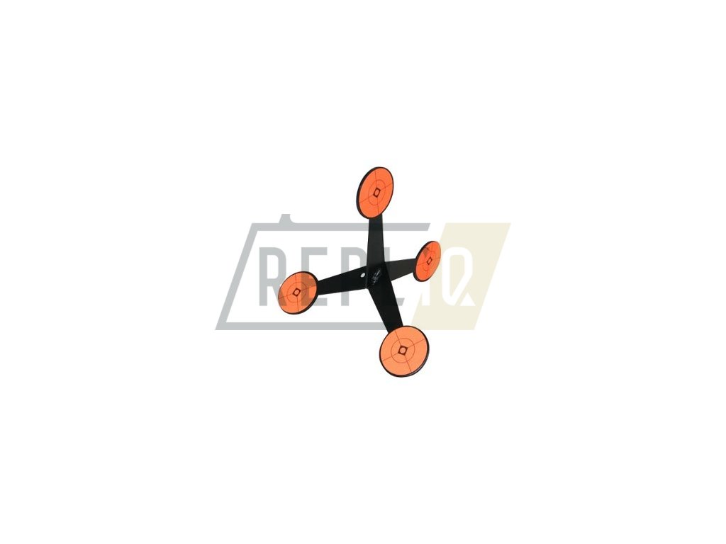 Kovový terčík ve tvaru hvězdy. Čtyři ramena. Zasažením terčíku se hvězdice vždy otočí tak poznáte váš zásah. Možnost dokoupení nálepek pro obnovení oranžových terčíků. Výrobcem určené pro vzduchovky, ale nám vydržely i .22 (nevztahuje se záruka).