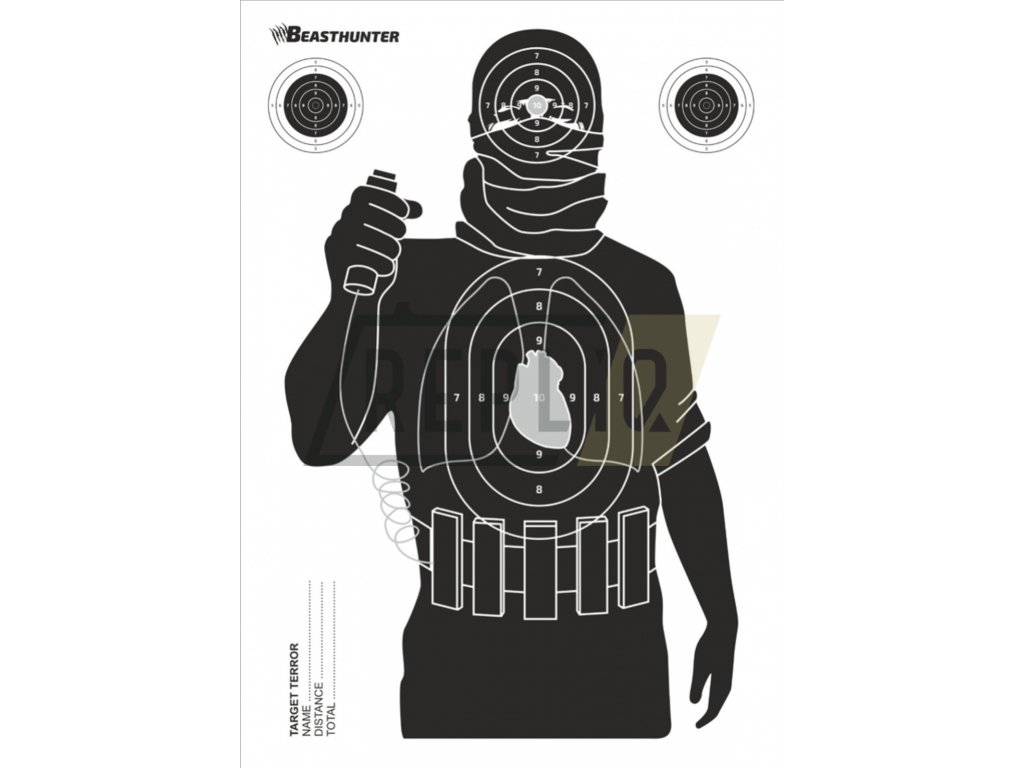 Profesionální papírové terče se siluetou do půli těla terrroristy s bombou.