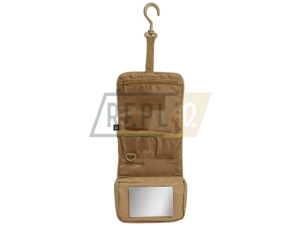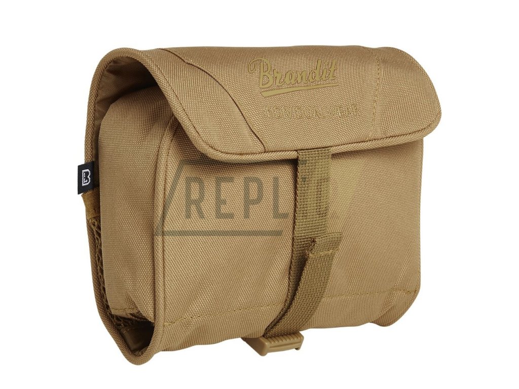 Praktická taška určená především pro uložení hygienických potřeb. Pouzdro je rolovací a v uzavřeném stavu je fixováno pomocí délkově nastavitelného pásku s plastovou přezkou. Po otevření uvnitř naleznete poměrně prostornou kapsu uzavíranou zipem, nerozbitné zrcátko, plastový D kroužek, dvě otevřené přihrádky ze síťoviny, plochou kapsu na zip a panel suchého zipu pro fixaci dodatečného vybavení. Celé pouzdro lze díky plastovému háčku pověsit.
