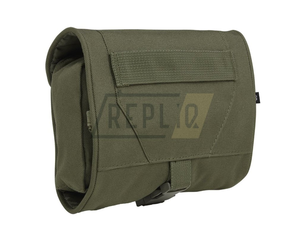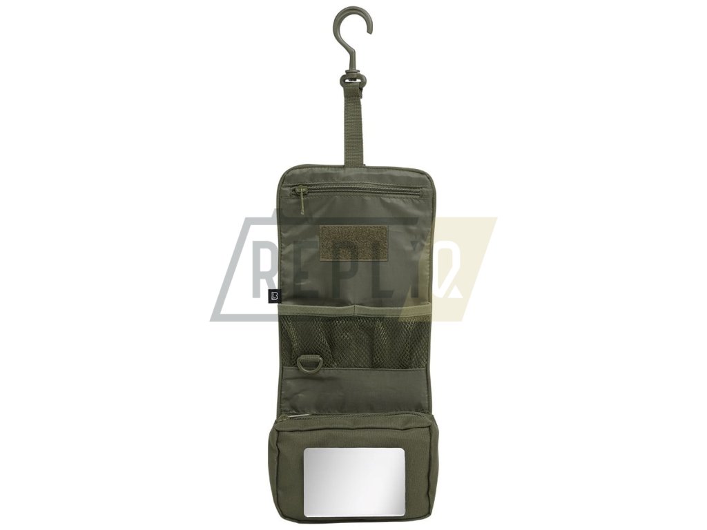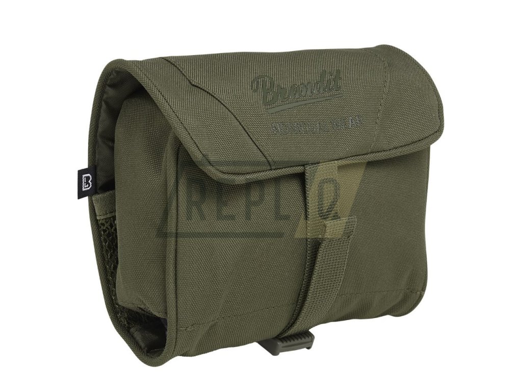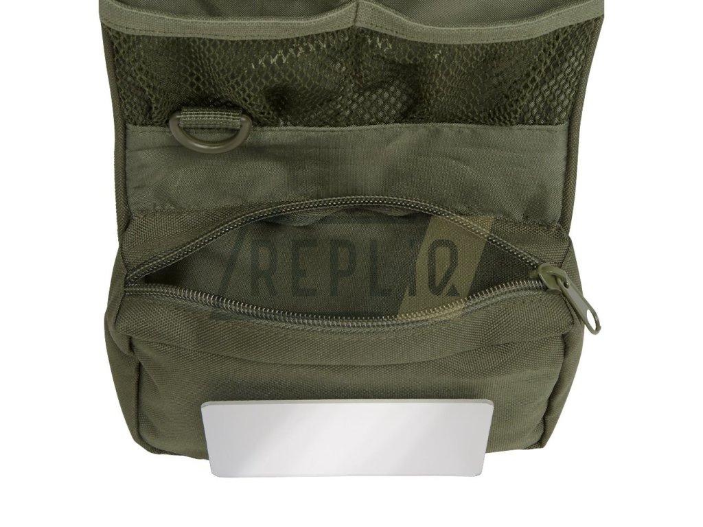 Praktická taška určená především pro uložení hygienických potřeb. Pouzdro je rolovací a v uzavřeném stavu je fixováno pomocí délkově nastavitelného pásku s plastovou přezkou. Po otevření uvnitř naleznete poměrně prostornou kapsu uzavíranou zipem, nerozbitné zrcátko, plastový D kroužek, dvě otevřené přihrádky ze síťoviny, plochou kapsu na zip a panel suchého zipu pro fixaci dodatečného vybavení. Celé pouzdro lze díky plastovému háčku pověsit.