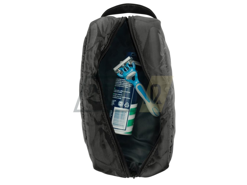 Mírně polstrovaná toaletka ve woobie stylu určená pro přenášení hygienických potřeb. Na výrobu tašky byl použit odolný 210T polyester v netrhavé rip-stop úpravě. Pokud je toaletka prázdná, je možné ji snadno složit do kompaktního rozměru. Díky bočnímu poutku ji snadno zavěsíte tam, kde je třeba.