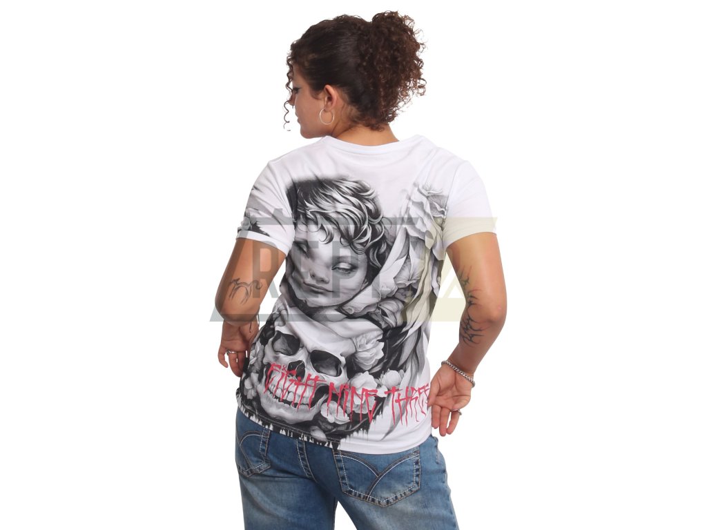 Dámské tričko YAKUZA ANGELIC. Perfektní pro uvolněný styl: Ne příliš štíhlé, ne příliš volné, tak akorát. Toto tričko má žebrovaný výstřih a vintage potisk. Je doplněna logem na bočním švu. Věnujte prosím pozornost našim specifikacím velikosti a pokynům pro praní níže.