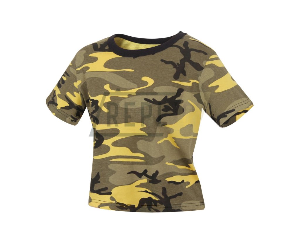 Krátké dámské tričko s moderním krátkým střihem umožňuje, aby vynikla vaše štíhlá postava. S barevnou kamufláží rozhodně nezapadnete mezi ostatní a budete naopak poutat pozornost. Lemovaný průkrčník dávají triku dražší vzhled. Smícháním bavlny a polyesteru získáte velmi pohodlný materiál pro nošení.