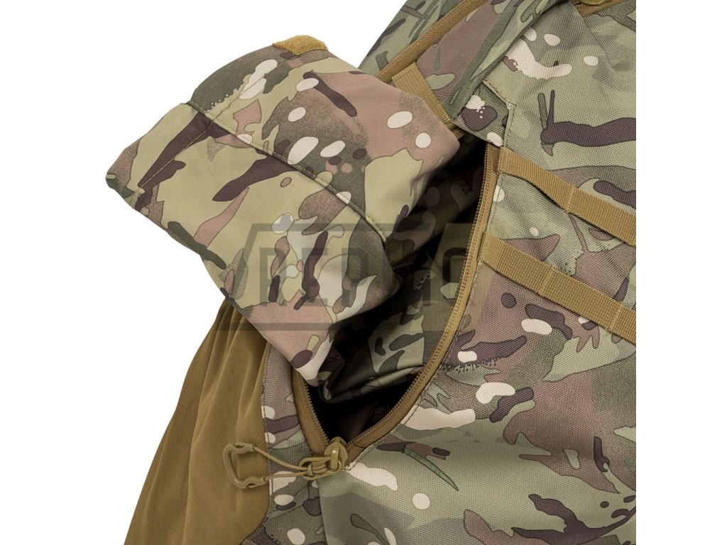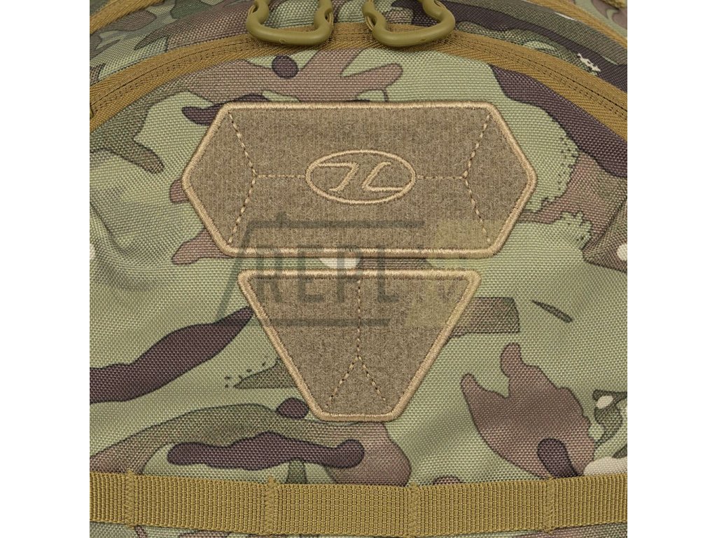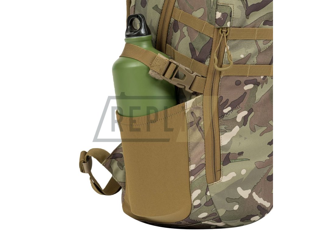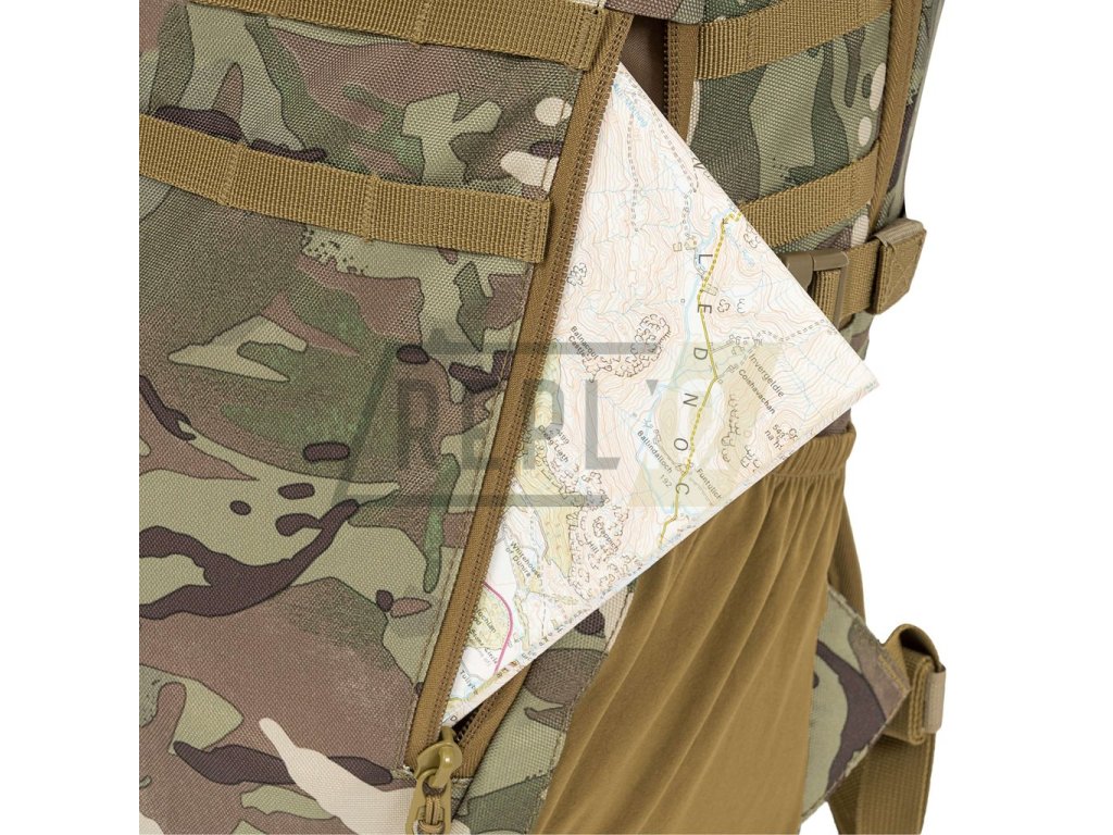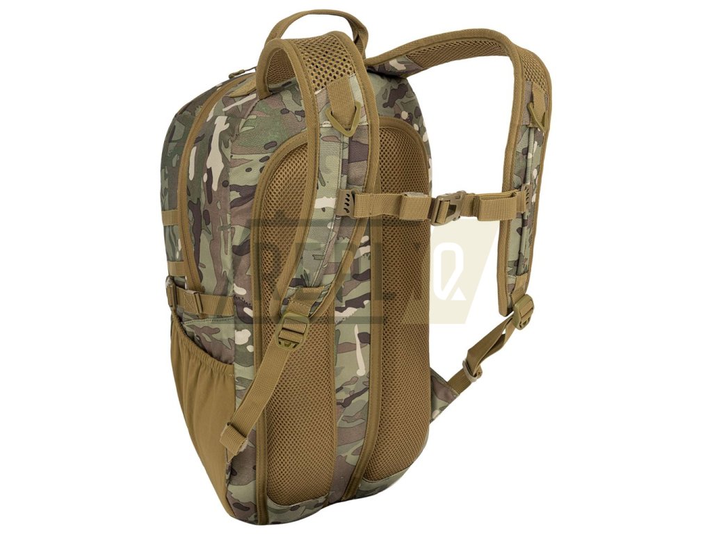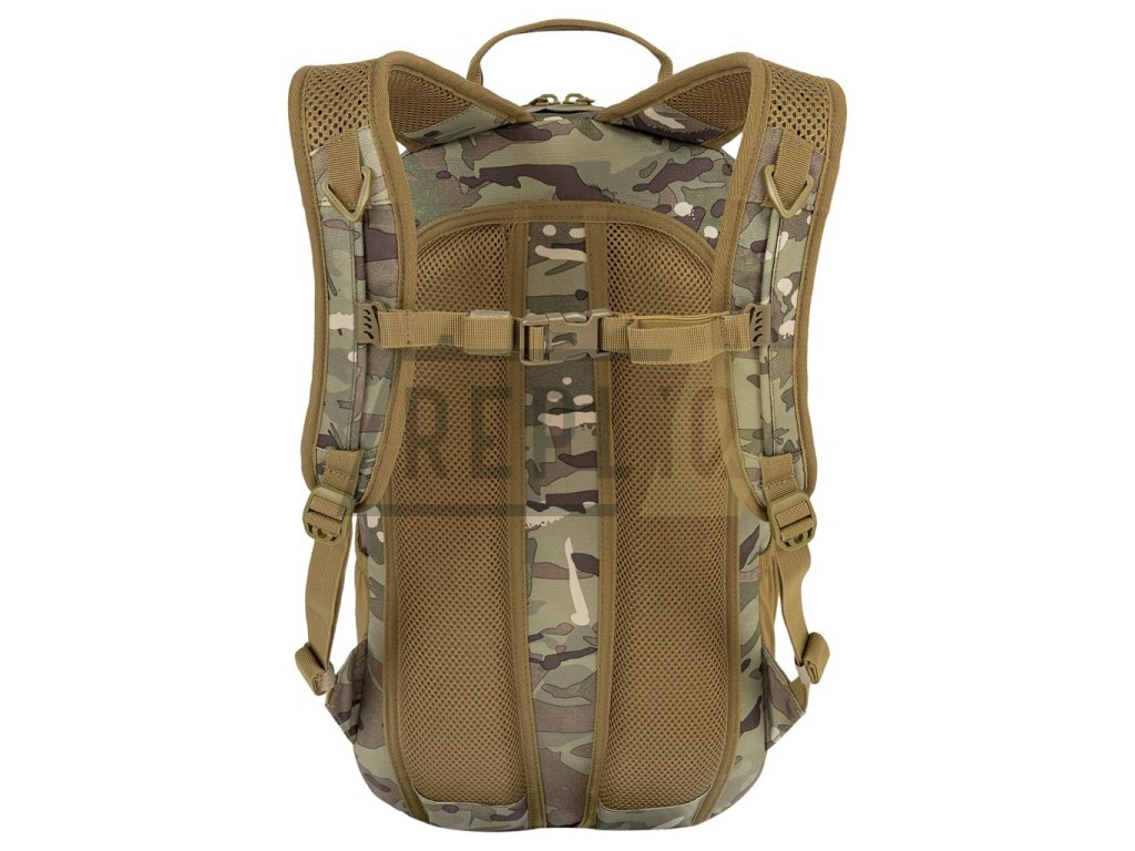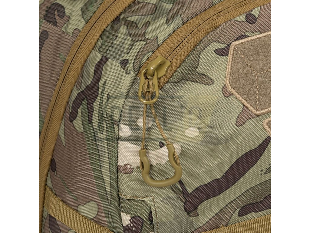 Záda batohu jsou bohatě polstrována pomocí 3D síťoviny jejíž tvar zachovává středový kanálek zlepšující odvětrávání. Nosné popruhy jsou nastavitelné, polstrované, disponují stabilizačními popruhy, plastovými triangly a výškově nastavitelným elastickým hrudním popruhem, který je spínán plastovou přezkou. Na bocích batohu naleznete dvě řady redukované MOLLE/PALS vazby, kompresní popruhy spínané plastovou přezkou a elastické kapsy. Přední část batohu je opatřena dvěma pruhy MOLLE/PALS vazby, prostornou středovou přihrádkou, vrchní kapsou a dvěma VELCRO panely.